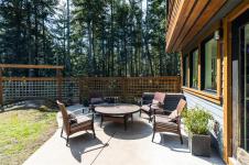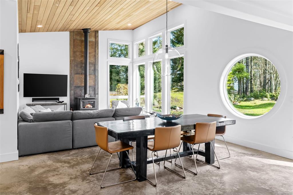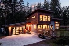 ABSOLUTELY STUNNING! Architecturally inspired & luxuriously finished West Coast Contemporary 3 bed + office, 2 bath, 2,109sf home on private, beautifully forested & masterfully landscaped 2ac+ estate. Be impressed w/the polished concrete floors (in-floor radiant heat), plethora of custom finishing details, use of natural materials & abundance of light enhanced by airy vaulted cedar ceilings. Gourmet kitchen w/oak cabinetry, quartz counters/island & SS Bosch appls. Dining area opens thru french doors to patio. Living rm w/floor to ceiling windows & cozy woodstove. 2 generous beds w/oak floors, 4pc bath & laundry complete main lvl. Up: primary suite w/new oak floors, w-i closet, 4pc ensuite & forest views/ocean glimpses. Garage connected by breezeway is finished & perfect for an office or gym. Huge basement/crawlspace (6'10"-0' ht). Beautiful yard w/custom fencing, garden beds, shrubs & flowers + hot tub! A rare find! (Lot size = "Private Yard Area" + bldg footprint from Strata Plan)
