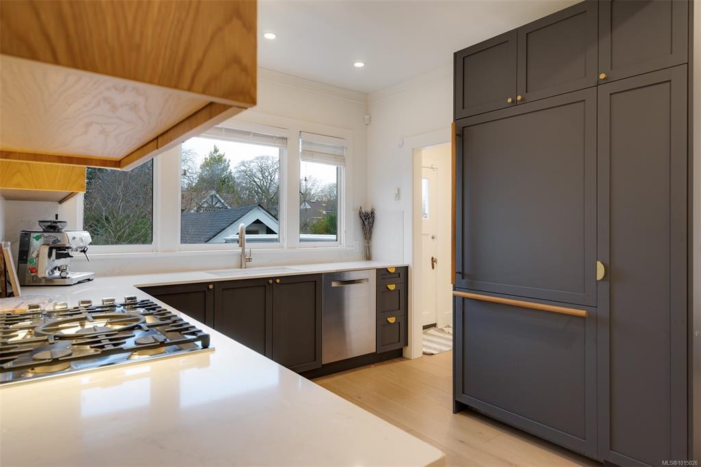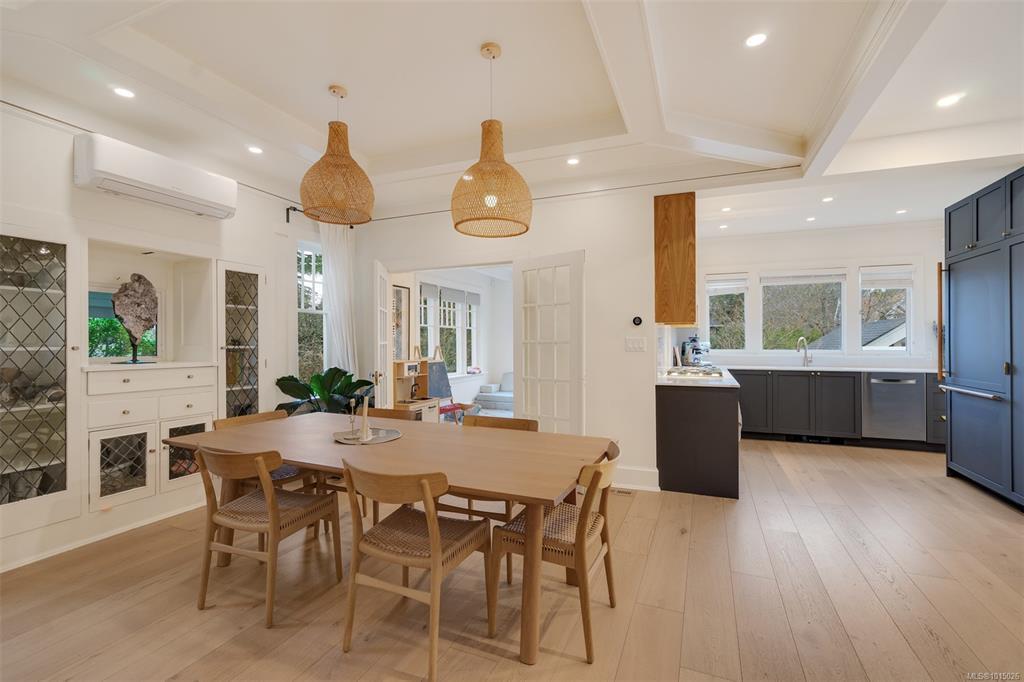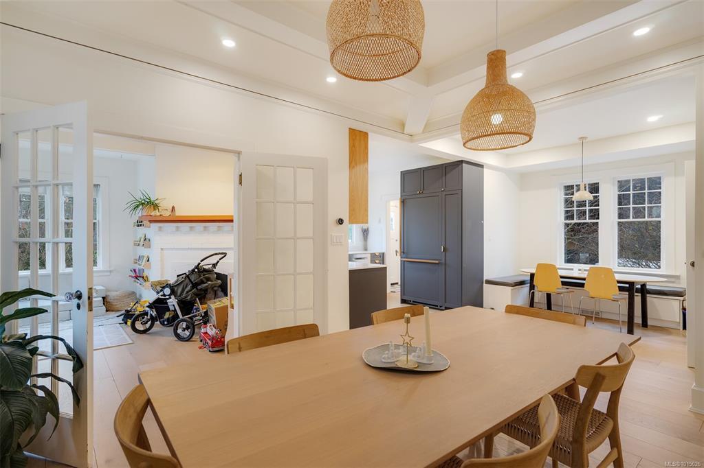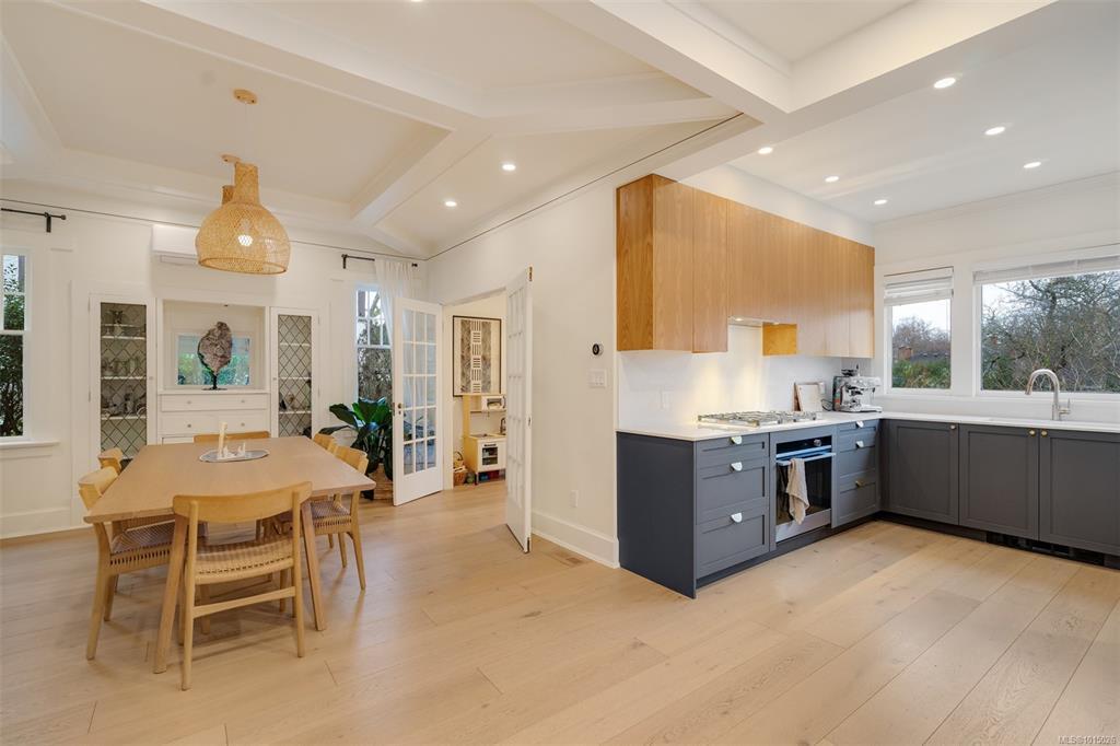 This exquisite 1912 Oak Bay classic renovated to blend old-world charm with modern luxury. You'll find it ideally located, close to the beach, Oak Bay Village's Penny Farthing, shops and excellent schools. The home offers the perfect family layout with 3 bedrooms upstairs and a large bathroom, with an additional bedroom/suite downstairs with kitchen area, laundry and bathroom. The main level features soaring 9 ft ceilings, refinished hardwood floors and flows seamlessly from the gourmet kitchen overlooking the backyard to a dining area, a bright eating area into a separate family room. There's also a sun-drenched living area bathed in natural light. Stunning details abound, including beamed ceilings, extensive built-ins, and two fireplaces, one with a custom mantle. Outside, there's a west-facing deck overlooking the fully fenced yard with a charming detached studio perfect for hobbies or a home office. Updates include a newer roof and windows, plus gas forced air heat.