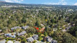 Nestled at the end of a quiet private lane, this 6,000+ sf lot offers a rare combination of sun, privacy, and natural beauty. Backing onto Rogers Court Park, the property enjoys a peaceful buffer of green space and natural landscaping for a serene garden retreat. With only one other home sharing the road, it feels secluded yet connected. This lot slopes down to the rear and lends itself to a level entry home. There are vibrant sunsets and westerly views toward the Sooke from this lot. Nearby are parks, Galloping Goose and Christmas Hill trails, access to major transit routes, shops, and restaurants. Families will appreciate the proximity to excellent schools, including Rogers Elementary. This fully serviced bare-land strata lot is zoned RS-6 (SSMUH eligible) and is an exceptional site to design and build your dream home.