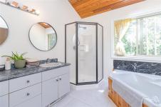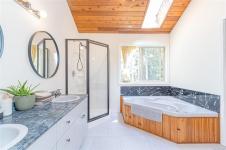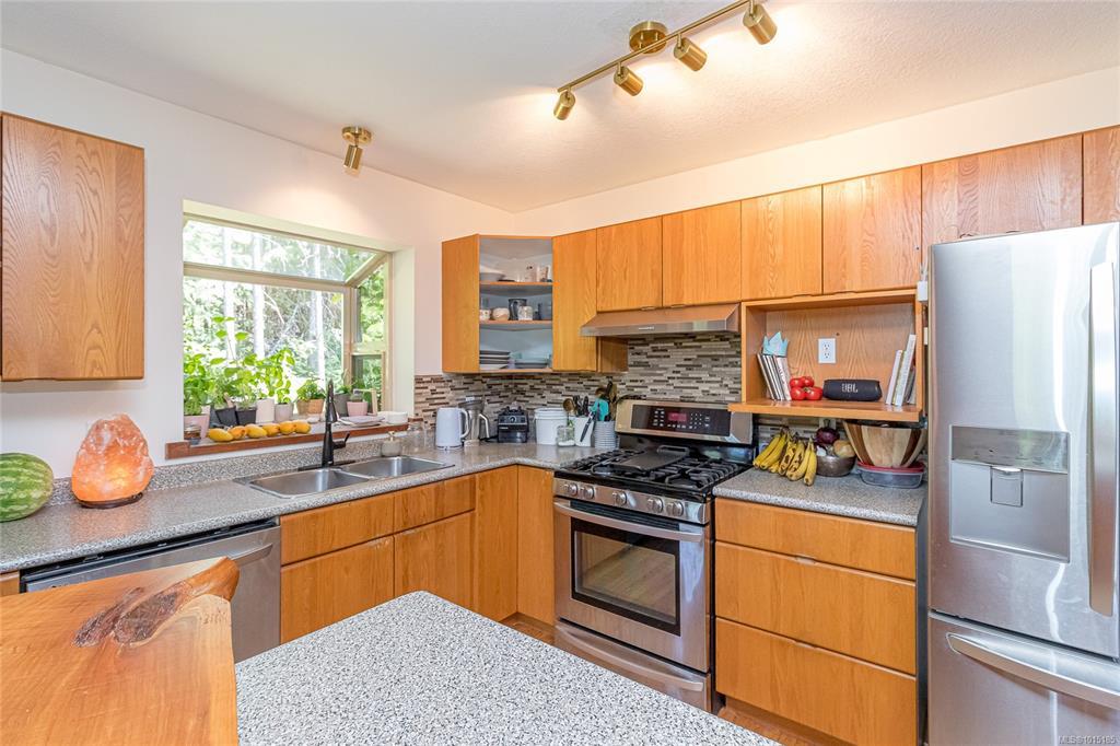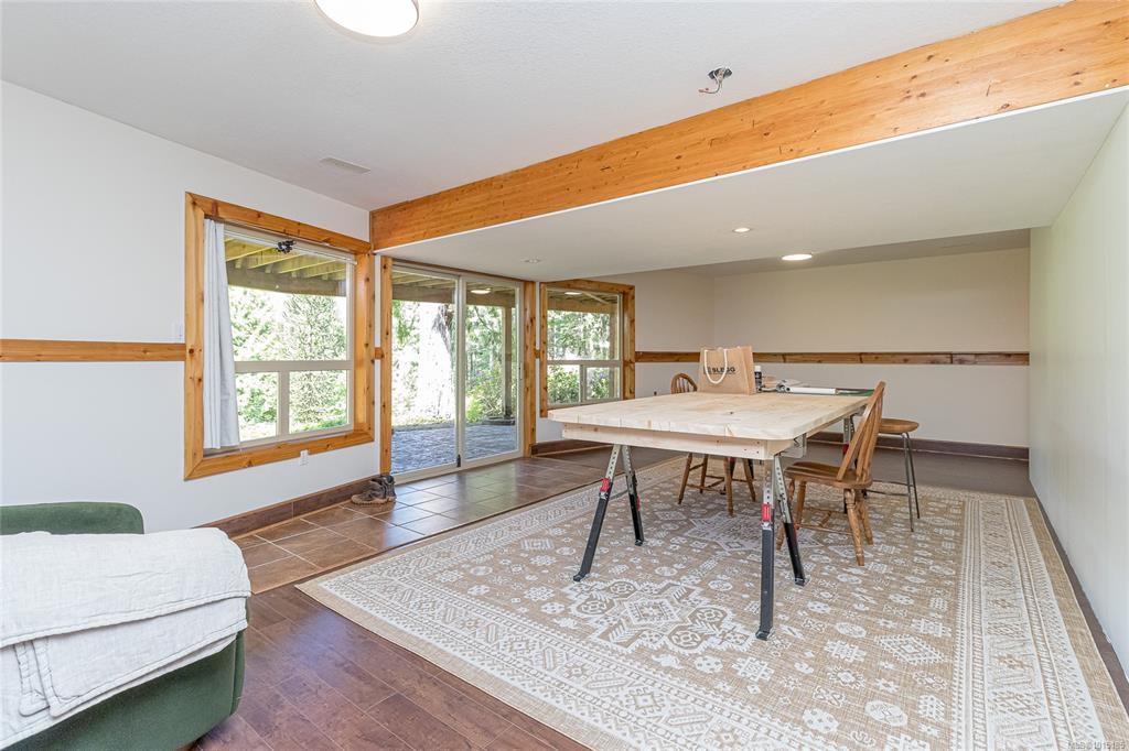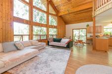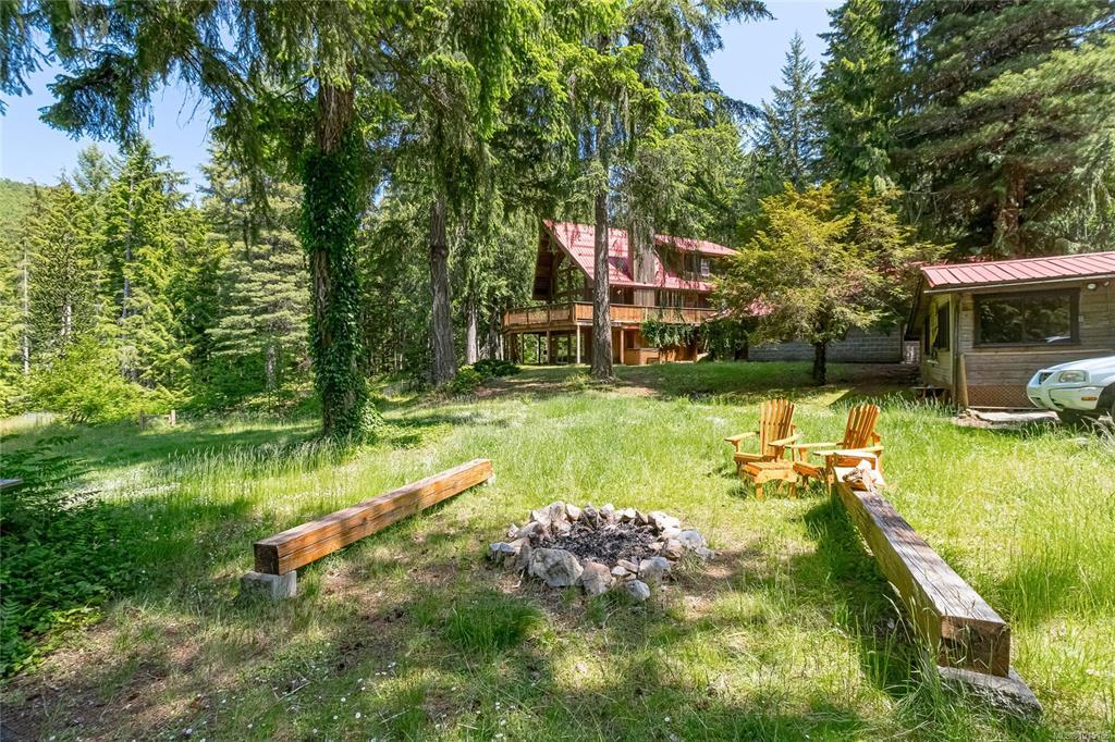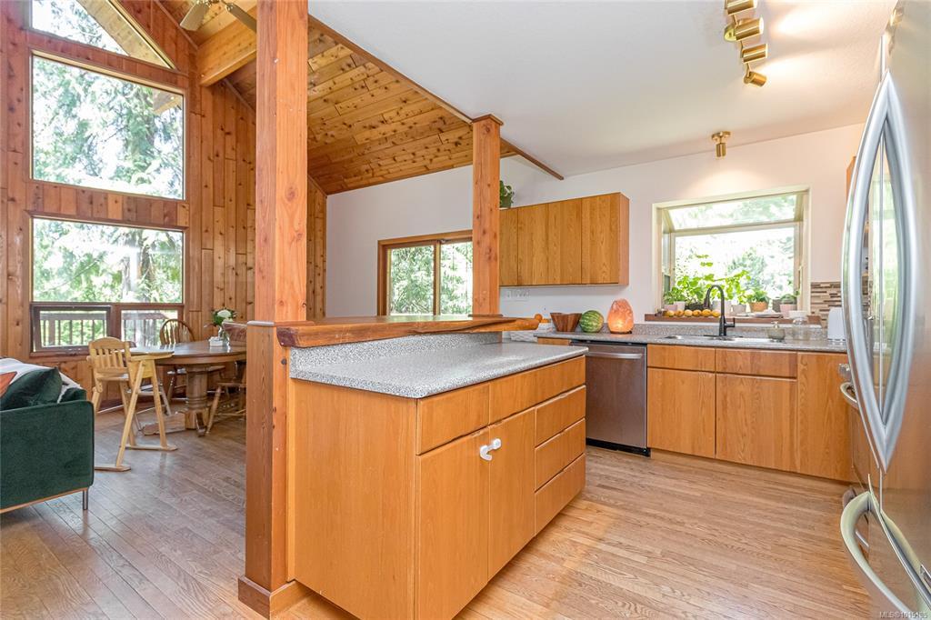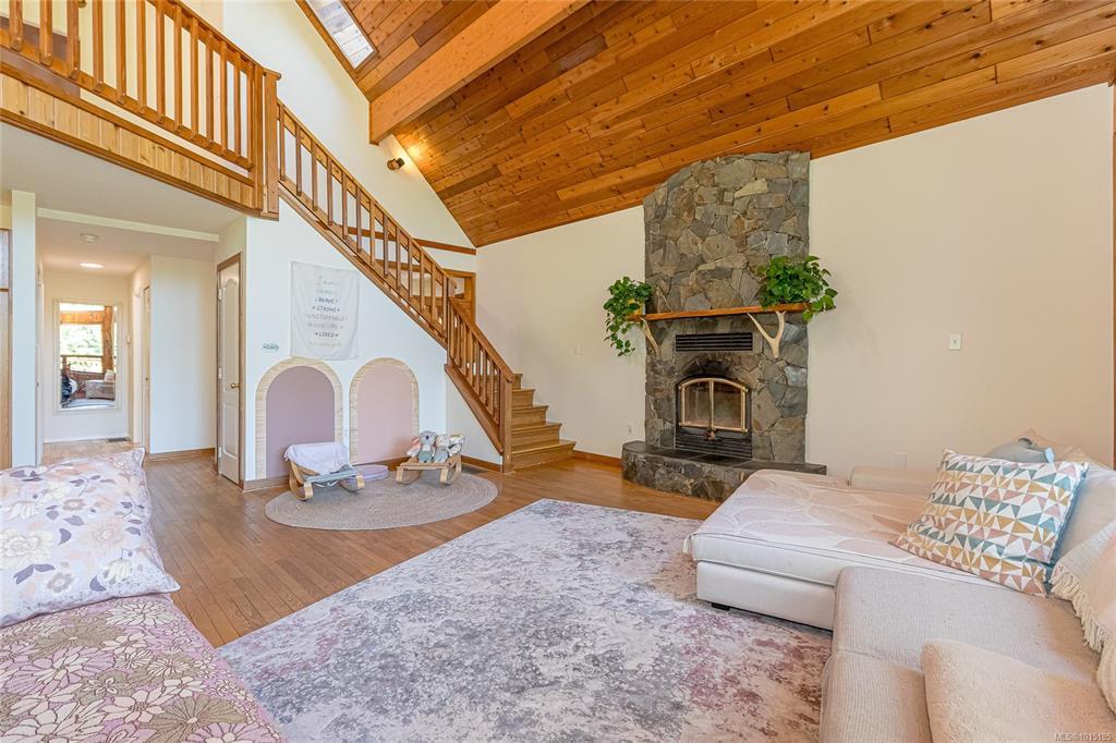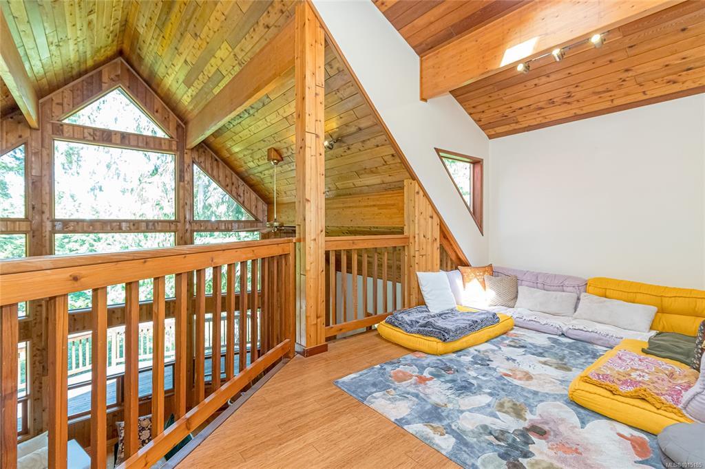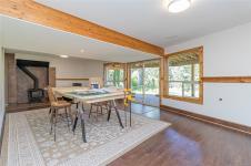 Tucked away on 10.35 private acres, this West Coast-style home blends natural beauty with modern comfort. The open main level showcases soaring 22’ ceilings, a woodstove, expansive windows, and seamless flow between kitchen, dining, and living areas. Two bedrooms and a full bath with laundry complete this floor. Upstairs features a loft-style area and a serene primary suite with double closets and a 5-piece ensuite. The walk-out lower level includes a cozy family room, bathroom, storage, wet bar with second kitchen potential, and access to a covered patio and hot tub. Enjoy over 700 sq/ft of decking, pond, seasonal creek, attached garage, detached garage with two lifts, small cabin best suited for art studio or guests, and Quonset hut for additional storage. Steps from the Trans Canada Trail—ideal for hiking, biking, and riding. A rare find in a peaceful, natural setting!