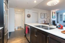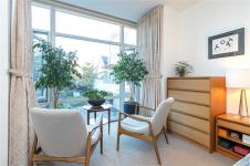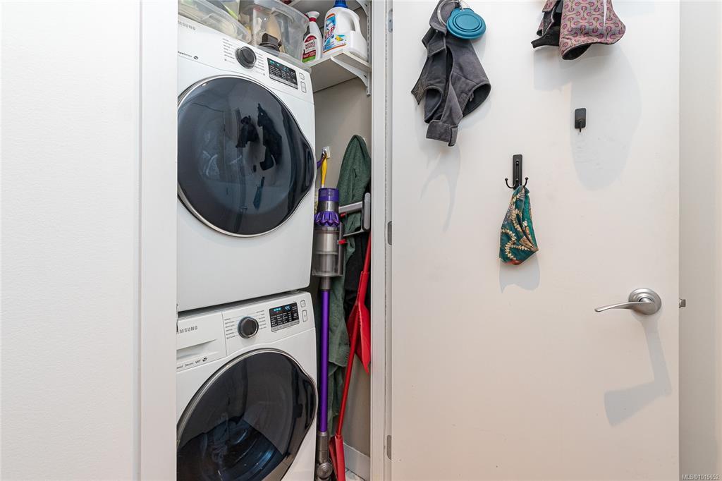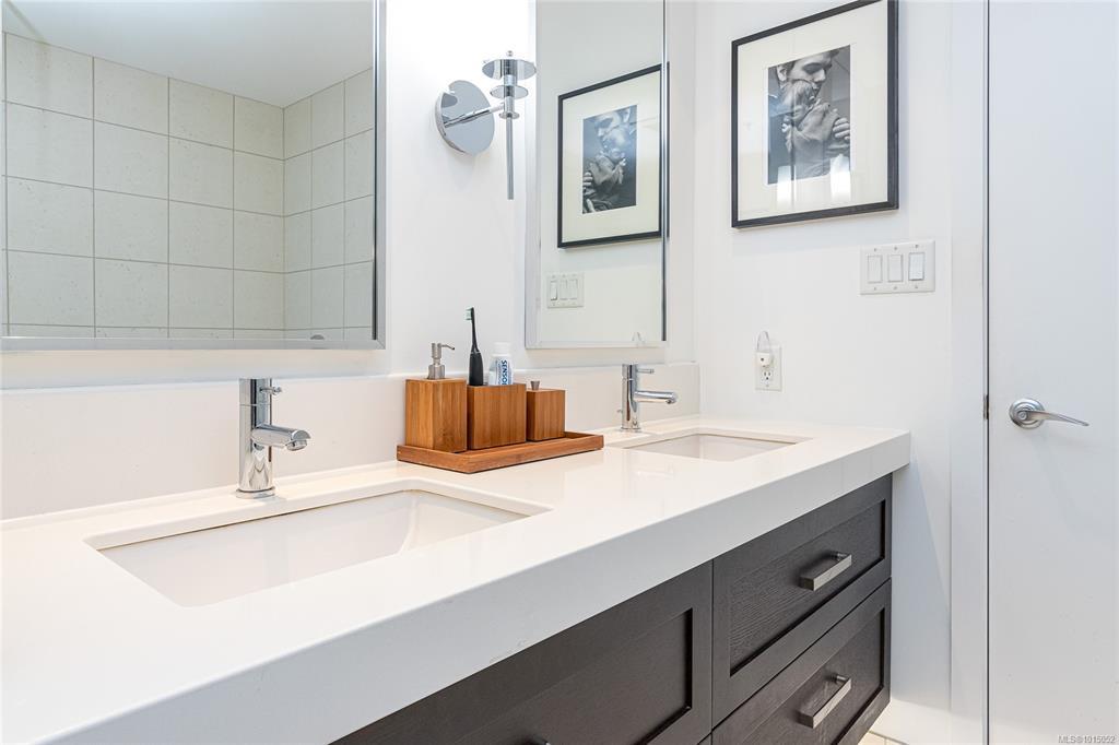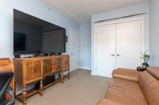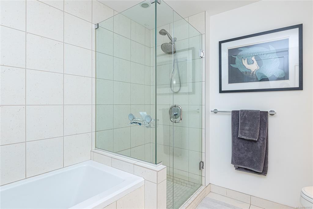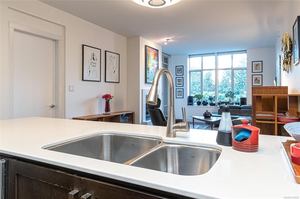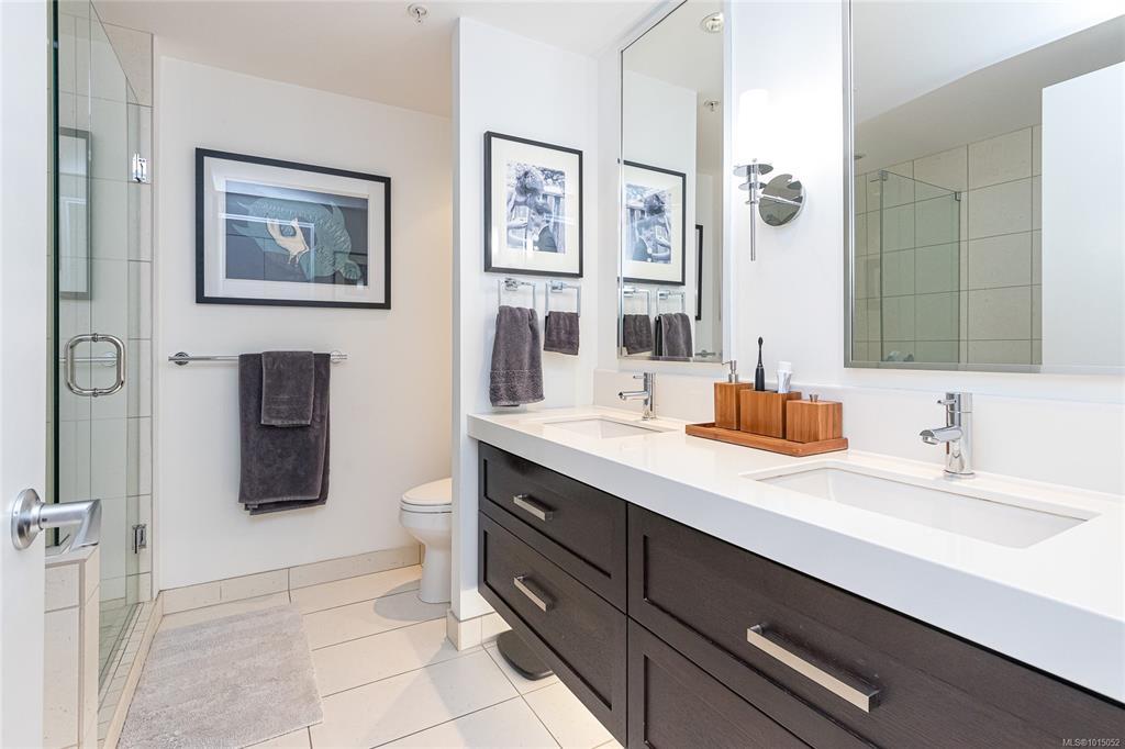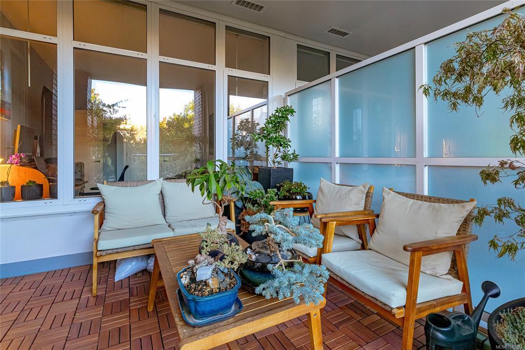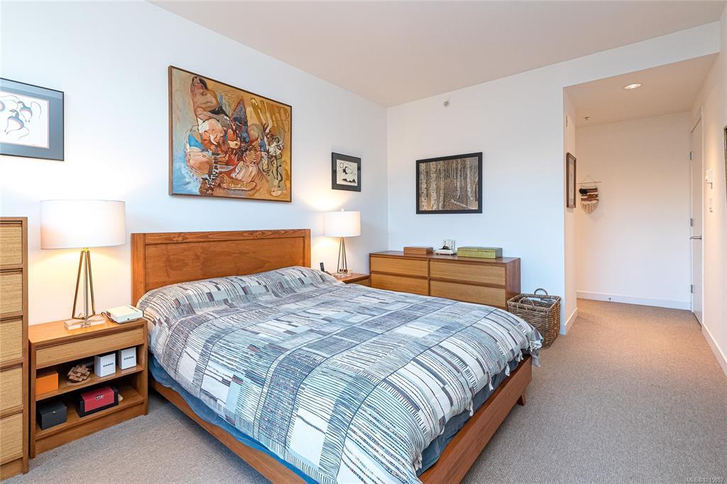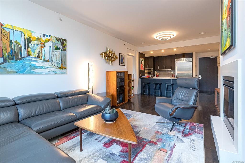 This unit is on the quiet side of the building overlooking the well-maintained courtyard gardens. Concrete & steel construction! A city OASIS, with 2 generous sized bdrms separated by an open-living plan, and~9ft ceilings. The kitchen has quartz countertops, KitchenAid SS appliances, lots of cabinet/counter space, & a newer garburator. Other features include classy engineered hardwood floors, 2 underground secure parking spots (EV-Ready), storage locker, covered deck with wooden tiles, new washer/dryer, electric fireplace, & floor-to-ceiling thermal windows. The well-run Chelsea building also offers a private gym, lounge, & caretaker. Superb location- just a stroll/cycle to Downtown, Cook Street Village, Beacon Hill, Inner Harbour, & Dallas Rd Waterfront. 2 pets OK & rentals permitted. A rare find and outstanding value in today’s market. Must be seen to really appreciate.