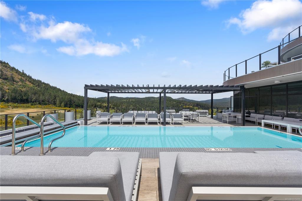 This elegant one-bedroom, one-bathroom luxury condo at the highly desirable One Bear Mountain features one of the building’s most sought-after floor plans and is vacant and turnkey ready. Soaring 10-ft ceilings, floor-to-ceiling windows, and a 205 sqft balcony offer breathtaking mountain views. The modern kitchen boasts Italian cabinetry, quartz countertops, and integrated Bosch appliances. High-end finishes include hardwood flooring, heated bathroom tiles, soft-close cabinetry, and air conditioning. Additional perks include in-suite laundry and a secured parking stall with an EV charger. Residents enjoy premium amenities: an outdoor pool, gym, yoga studio, sky lounge, pet and car wash, and business center. Golf, dining, and trails are just steps away. GST INCLUDED