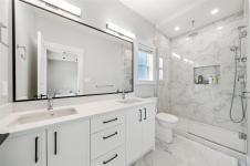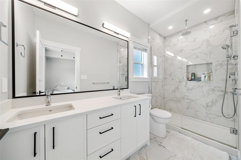 Sophisticated west coast contemporary home blending modern design with smart functionality. The main level includes a spacious den and a legal one-bedroom suite with separate hydro and laundry, offering excellent income potential or a private retreat for extended family. The grand upper level showcases soaring ceilings, expansive windows, and a seamless open concept design. The chef-inspired kitchen with island flows into the dining and living areas, opening to a sunlit deck with sweeping views. The primary suite features a walk-in closet and spa-like ensuite, with two additional bedrooms and full bath nearby. A spacious double garage, storage, irrigation and private backyard retreat complete the home. Set in a sought-after neighbourhood close to top schools, parks, and boutique amenities, with easy commuter access. This property delivers luxury with 180 degree views (ocean, city and mountain), lifestyle, and financial flexibility.