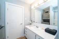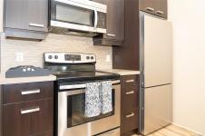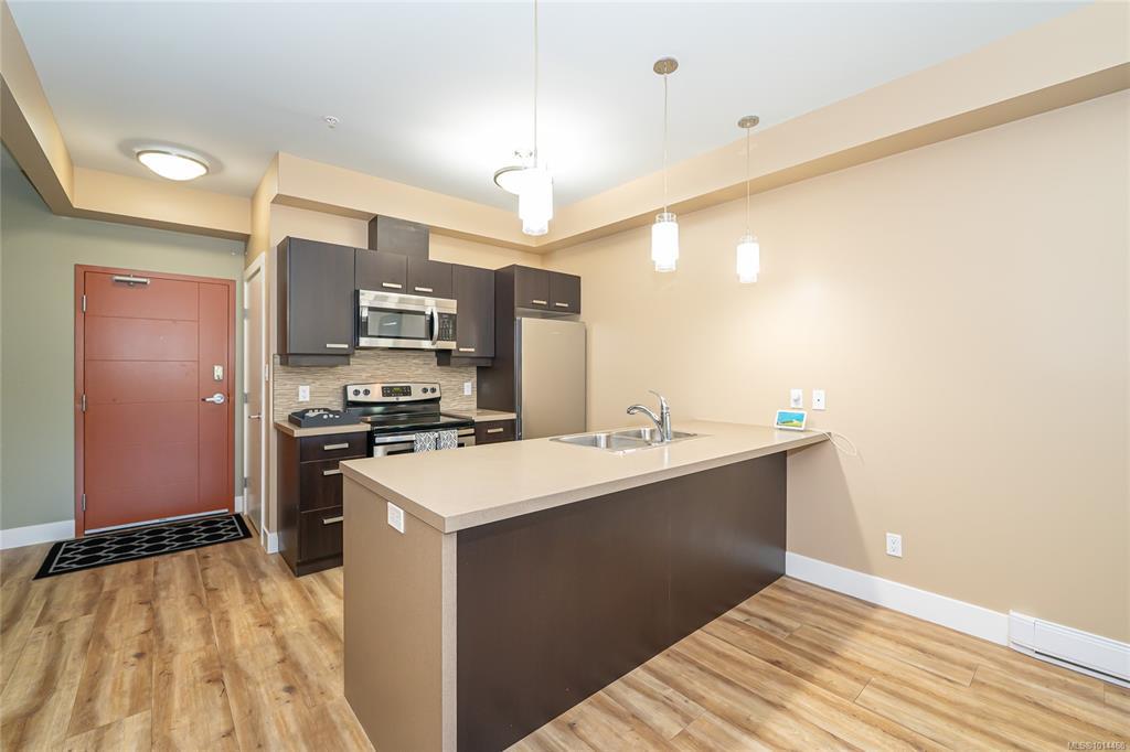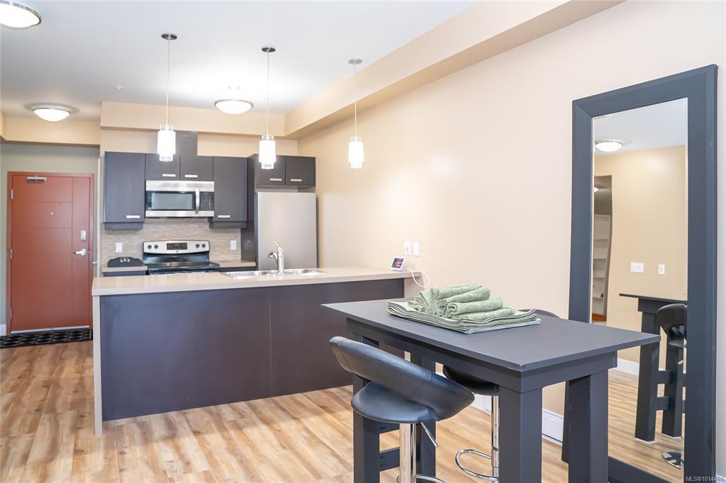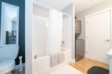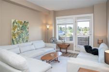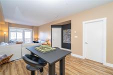 This beautiful bright 960 sq. ft. corner condo combines affordability and style with no age restriction, a low strata fee, and flexible rental options—ideal for investors, first-time buyers, or downsizers. The contemporary 1-bedroom + den layout features 9' ceilings, wide-plank flooring, and a sleek kitchen with eating bar. The bedroom offers a walk-in closet and easy access to the 4-piece bath, while the den is perfect for an office, studio, or guest space.
