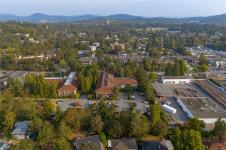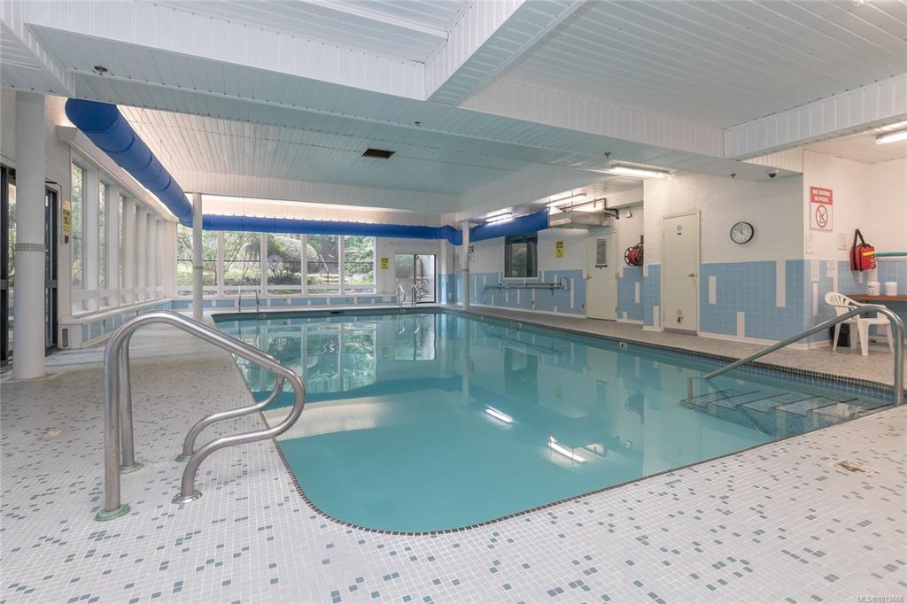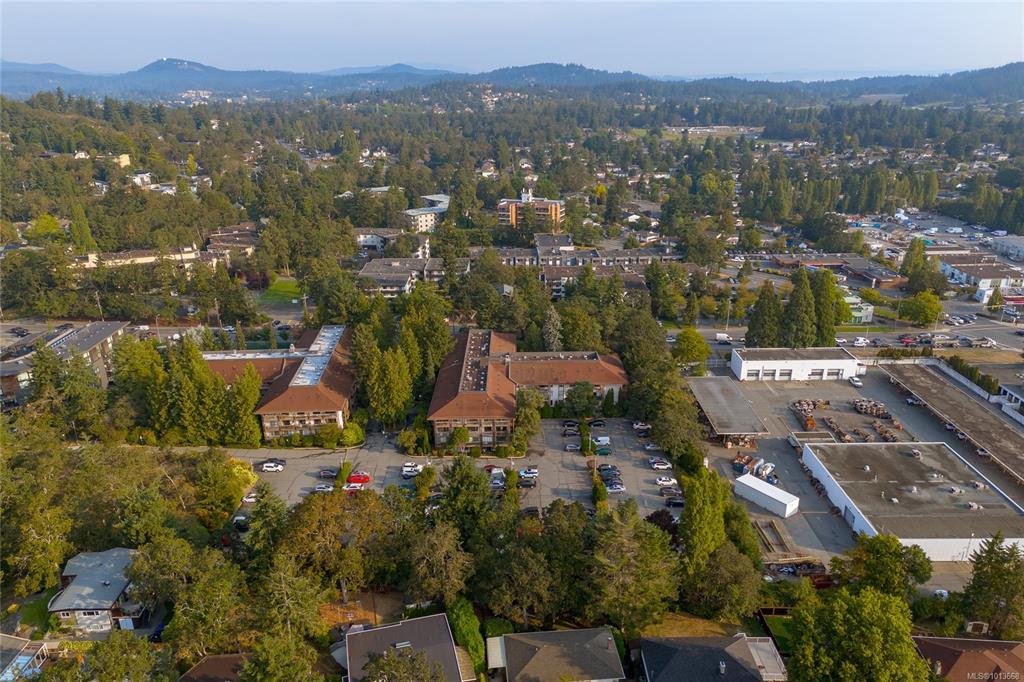 Discover this top-floor loft-style condo, a unique opportunity for buyers looking for something with character & flexibility. This suite offers multiple options for living & working or studying. The spacious loft easily accommodates a comfortable bedroom with plenty of space for a home office or reading nook. The main level features a versatile open-concept design, with a partial partition wall that creates separation in the living space. Use it as a second bedroom, a dining area, or customize it further with strata approval to suit your needs. Take in the tranquil views of mature trees, blooming rhododendrons and landscaped gardens. Royal Woods stands apart with amenities rarely found elsewhere: a heated indoor pool, hot tub, sauna, gym, games room with snooker table & ping pong, shuffleboard, library, hobby room, meeting lounge, & even exterior tennis courts. This vibrant community is set in a central location, close to Saanich Centre and UVic.