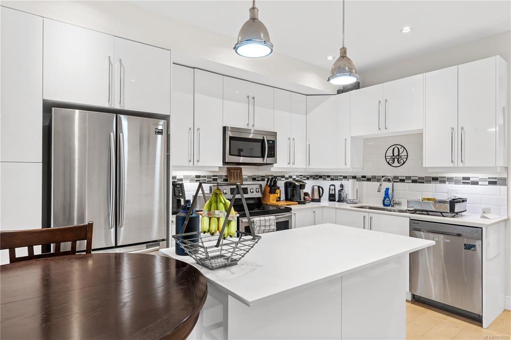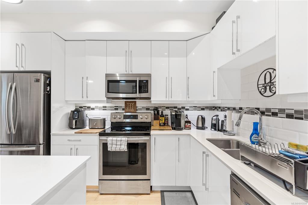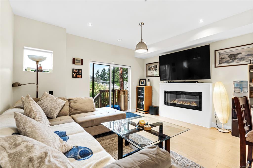 Welcome to Parkland Townhomes,where contemporary West Coast design meets everyday comfort in the heart of Langford.Built in 2018, this thoughtfully crafted home showcases impressive 11-foot ceilings in the upper-level bedrooms,creating a bright and airy retreat that sets this residence apart.The main floor welcomes you with engineered wood flooring and high-end finishes.The chef-inspired kitchen is a true highlight,featuring sleek quartz countertops, premium stainless steel appliances, & modern fixtures—perfect for both casual family meals and entertaining friends.The 3 spacious bedrooms offer flexibility for a growing family, home office,or guest space.All 3 bathrooms continue the upscale feel with matching quartz surfaces and stylish fixtures.
