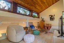 This beautifully updated 2bed, 2bath home features a versatile loft, offering the perfect blend of modern luxury and natural beauty. Nestled on a large, private lot, this south-facing gem is bathed in natural light and surrounded by lush greenery, creating a tranquil treehouse-like atmosphere. Discover a fully renovated kitchen, complete with sleek countertops, premium appliances, and ample storage, making it a chef’s delight. Bathrooms have also been thoughtfully updated with contemporary finishes, offering a spa-like experience. Spacious living areas flow seamlessly onto large south-facing decks, ideal for entertaining, relaxing, or simply soaking in the serene views. The loft adds extra flexibility, perfect for a home office, studio, or additional living space and endless possibilities for outdoor enjoyment. Don’t miss this rare opportunity to own a slice of paradise with modern upgrades in a treehouse inspired setting. Measurements are approximate and furniture is negotiable.