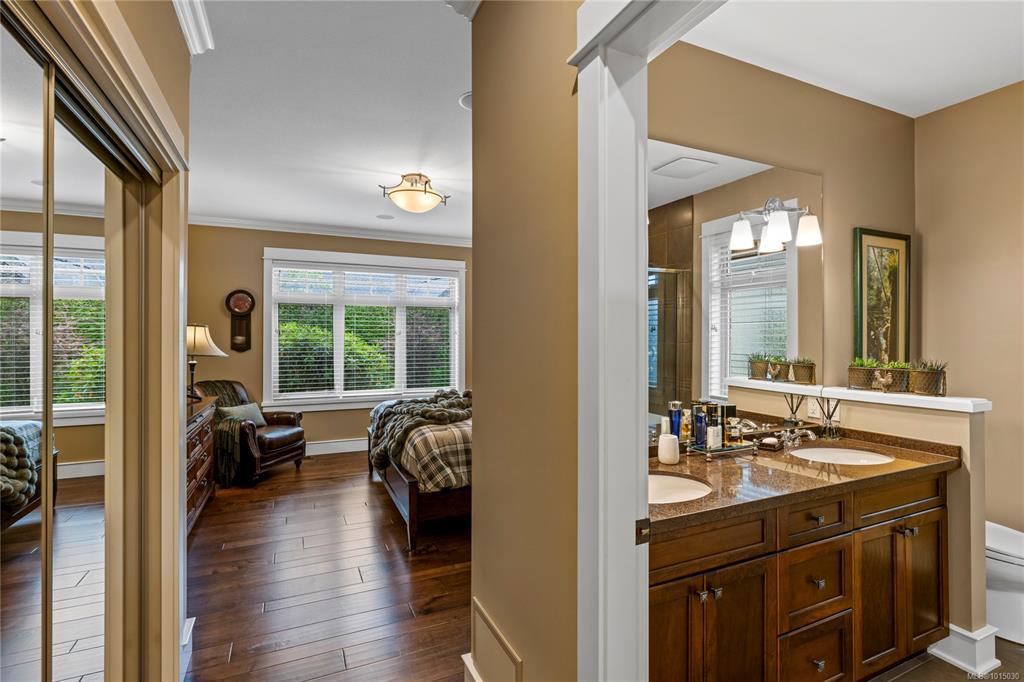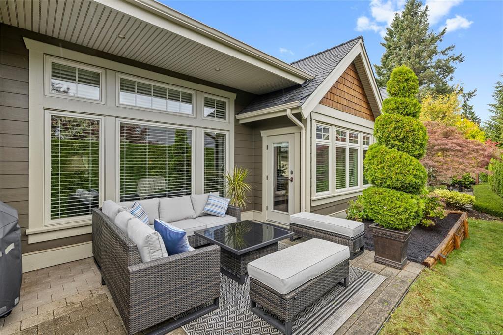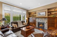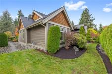 Executive Living in Eaglewood! Perfectly situated just off prestigious Pintail Drive and mere steps to Qualicum’s most stunning sandy beach, the location is second to none. This thoughtfully designed home offers 2 bedrooms plus a den and 2 bathrooms, including a spacious primary ensuite with a soaker tub and separate shower. The open-concept layout highlights a fabulous great room featuring custom milled cabinetry, floating shelves, and a cozy ambiance with a gas fireplace. The island kitchen, complete with a dedicated dining area, is ideal for both everyday living and entertaining.