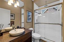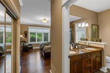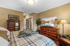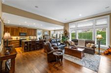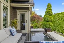 Extensive updates bring added comfort and style: hardwood floors throughout, crown mouldings, upgraded lighting, built-in sound in the great room, den, and bathrooms, plus an epoxy-finished garage floor with a hot/cold frost-free tap. Outdoors, a very private back patio invites you to relax and unwind in a serene setting.