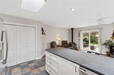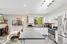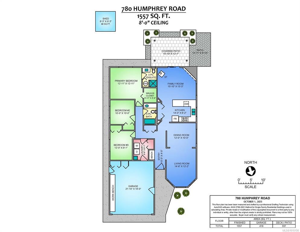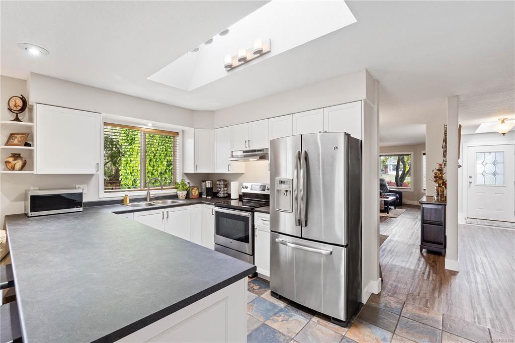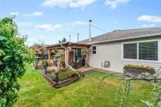 Bright, clean, and move-in ready! This 1,557 sq ft rancher offers 3 bedrooms, 2 baths, and a traditional layout with a welcoming front living/dining area and a rear kitchen/family room that opens to the private backyard. The kitchen features brand-new counters, skylights, a spacious pantry, and flows easily to the cozy family room with fireplace. The primary suite includes a walk-in closet and 3-pc ensuite. Outdoors, enjoy a fully fenced, south-facing yard with mature landscaping, garden shed, and covered tiled patio - perfect for entertaining! This property includes a double garage with workbench plus a large driveway, providing ample parking. Conveniently located within walking distance to schools, shopping, town, and the beach. This home offers comfort, updates, and an ideal setting for retirees or families alike.