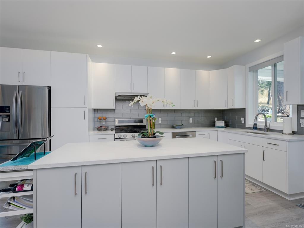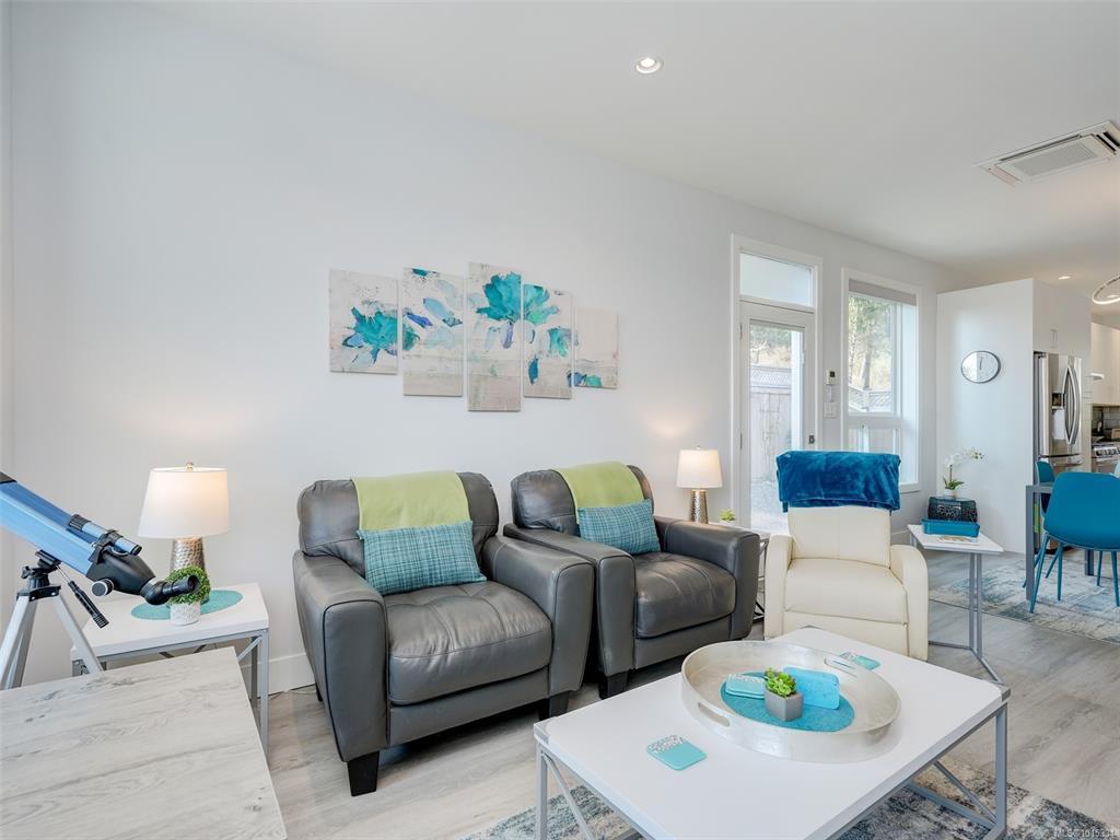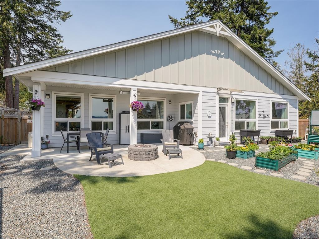 Custom Built/Designed SINGLE LEVEL RANCHER style home offering SOUTH facing OCEAN & OLYMPIC MOUNTAIN VIEWS! Set up as a side-by-side duplex - each side completely independent to its own with separate hydro meters, heat pump systems, on demand hot water systems, and fully fenced yard spaces! Finishings on both sides are high end throughout including; vinyl floors, heated tile floors in both ensuite bathrooms with soaker tubs and walk in showers, spacious living area offering natural lighting throughout, functional open concept layouts, auto touch electric blinds, tons of storage cabinets, laundry rooms with side x side washer/dryer, N-Gas fireplaces and N-Gas stoves (request feature sheet for more details). Both units are light filled with the main being 2 bed 2 bath + den and the other side is a 1 bed 2 bath unit. Do not forget about the investment potential of your 1198 square meter common property co-owned with the neighbouring property!