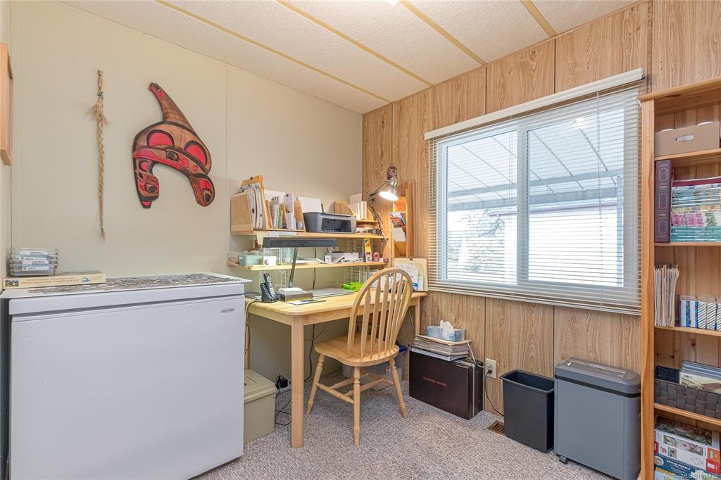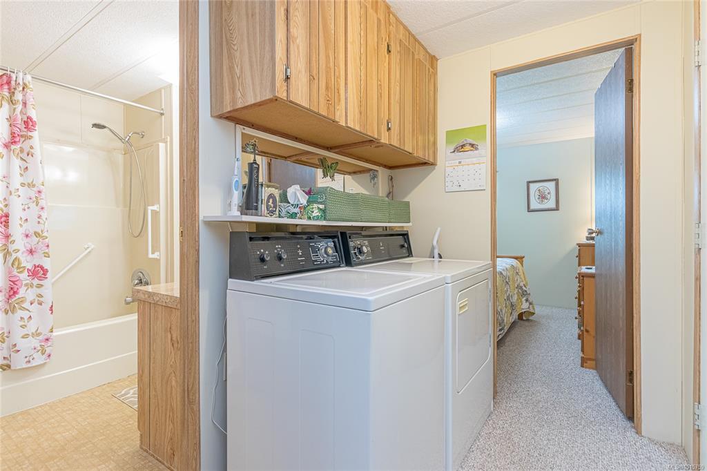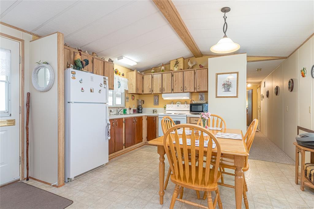 Welcome Home! This well-kept 840 sq ft, 2-bedroom, 1-bath home is nestled in Crest-1 MHP, one of North Nanaimo’s most desirable 55+ parks. The functional, easy-care layout features a bright living area with plenty of natural light and a well-designed kitchen offering quality appliances and ample cupboard space. Enjoy convenient paved parking right by a covered porch entry, plus a detached storage shed for all your extras. Ideally located within walking distance to grocery stores, coffee shops, restaurants, liquor store, and a shopping mall. The bonus on-site clubhouse provides a great spot for social gatherings. Situated on a main bus route, this home delivers peaceful, low maintenance living and peace of mind in a friendly, well-managed neighborhood. Easy to show. All measurements are approximate and should be verified if important.
