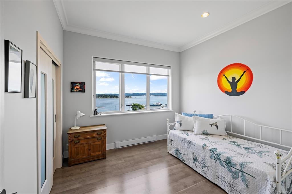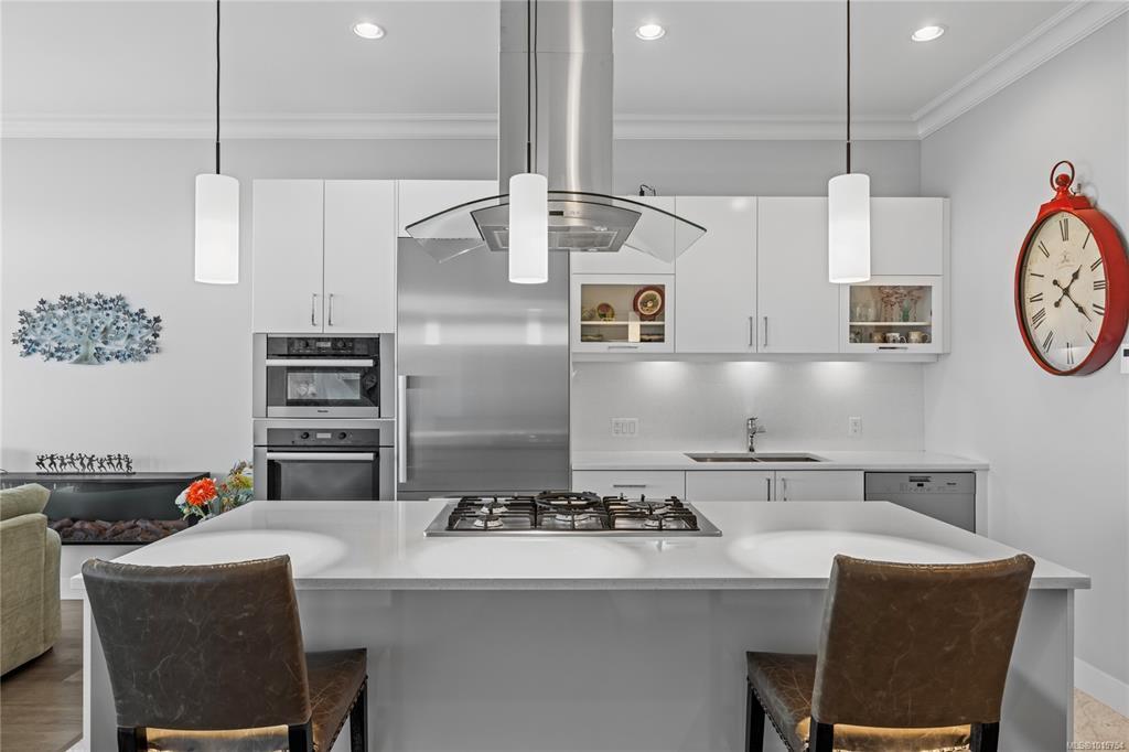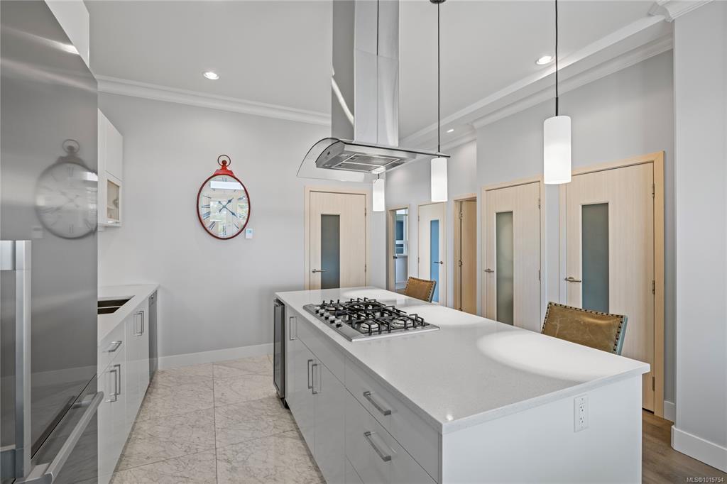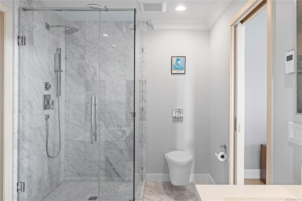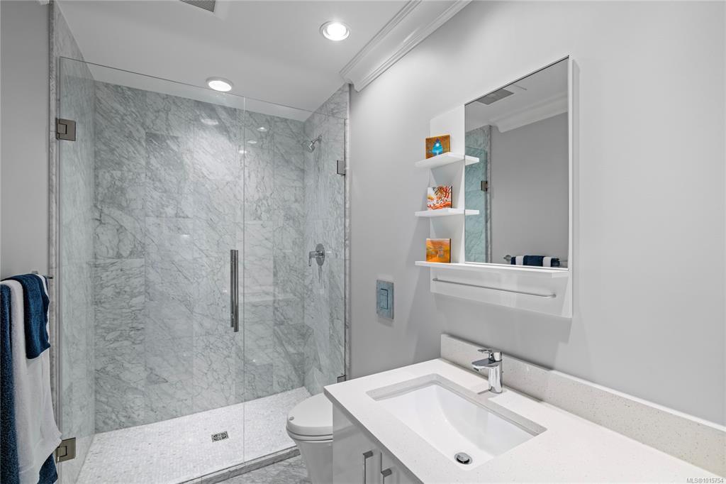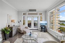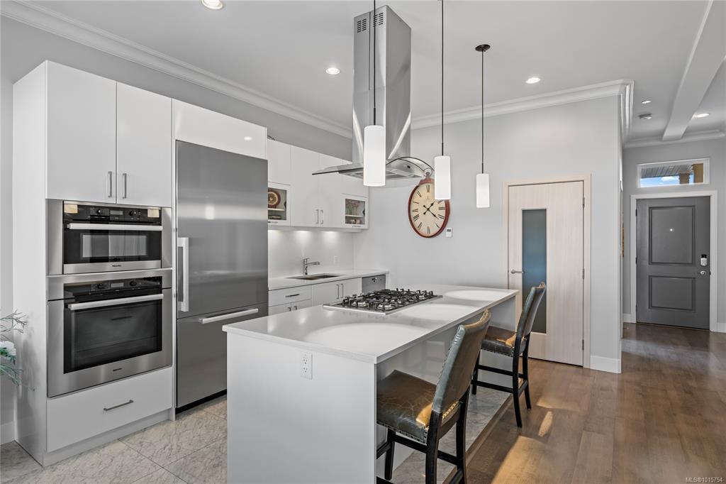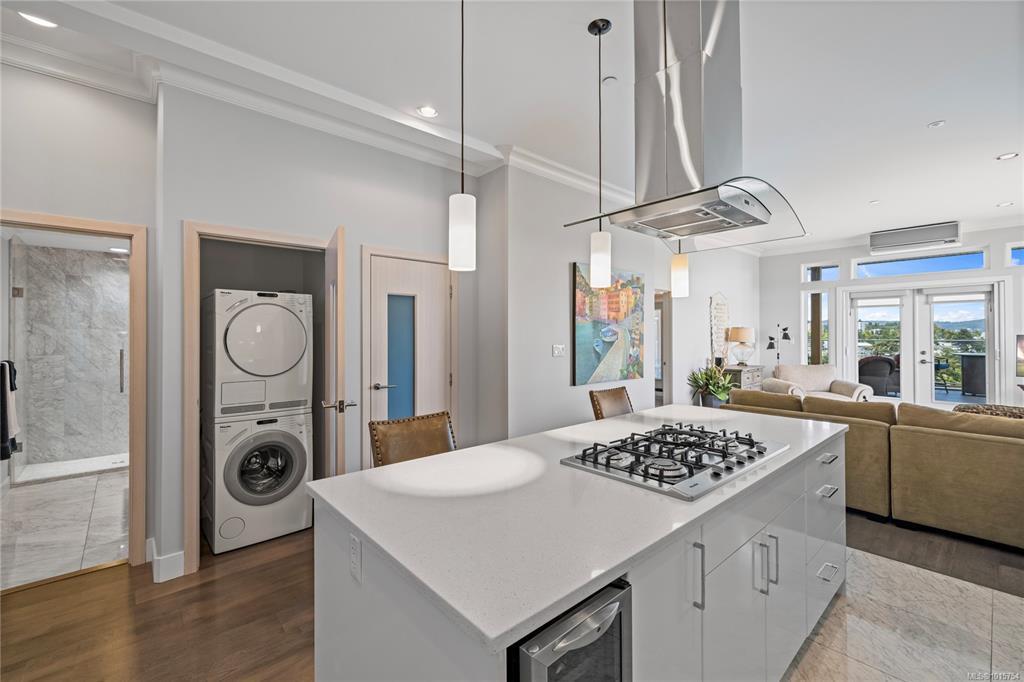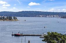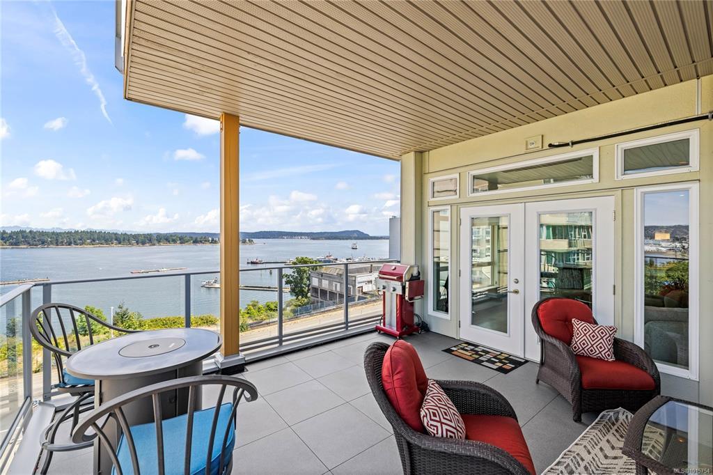 Located just steps from Nanaimo’s waterfront & vibrant downtown core, Unit 404 at the Aqua Residences offers the ultimate in West Coast living. This luxurious 3-bedroom, 2-bathroom corner unit is filled w/ natural light & features a contemporary open layout, perfect for entertaining or quiet nights at home. The chef’s kitchen boasts quartz countertops, soft-close cabinetry, a walk-in pantry & a premium Miele appliance package. Both the living room & primary bedroom open onto a large, covered patio with sensational views of the Harbour Channel & coastal mountains. The primary suite includes a walk-in closet and spa-inspired ensuite w/ heated floors, a soaker tub, walk-in shower & hidden TV in the mirror. With 10' ceilings, dual heat pumps, in-suite laundry & hot water on demand, every detail is designed for comfort & efficiency. This pet & rental-friendly building has no age restriction, includes underground parking, a gym & easy access to the float plane, Helijet & Hullo Ferry.