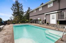 Nestled within trees, vegetation & gardens on 3.13 acres & on MUNICIPAL WATER, this breathtaking property is a rare oasis! 18’ vaulted ceiling & perfectly captured ocean/mountain views in sun-soaked south facing great room captivate upon entry. Brilliant floor plan guides you through kitchen, dining room, breakfast nook, office, laundry room & primary with 5 pc ensuite & access to decks w hot tub. Upstairs a family room, 3 add'l beds & 5 pc bathroom await. A massive 60’x27’ 3+ car garage w bathroom provides space for vehicles & projects. Above, a 1bed suite w own access & lift makes an accessible rental unit & no-step studio suite below main residence is perfect for accommodating visitors & family. Plenty of space for campers/RVs/boats/quads & surrounded by trail systems & access points - your summers will never be the same again! Spend it immersed in nature, in your in ground pool or under the stars in your hot tub, the memories you’ll make will be looked back on for years to come.