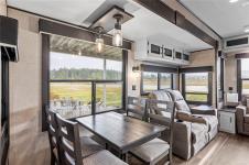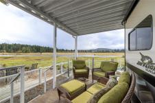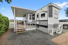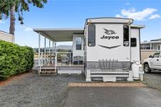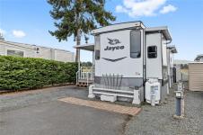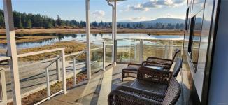 Welcome to Surfside RV Resort — a truly unique, gated oceanfront retreat in the charming seaside town of Parksville on Vancouver Island. This exceptional vacation property features a beautifully appointed 1-bedroom, 1-bath fixed trailer built in 2023, fully furnished and thoughtfully equipped with all the modern comforts you need. A large covered patio with glass railings, complete the picture. This gives you an amazing view of both the mountains and all that this divers nature reserve has to offer. Surfside’s outstanding amenities include a spacious clubhouse, tennis courts, and a pool and hot tub complex, ideal for relaxing or staying active, whatever your mood. While Surfside is an active and popular summer resort, this trailer, with its winterized features, electric fireplace, mesmerizing view of the estuary and mild coastal weather, provides a cozy place for an extended midwinter break, your perfect getaway, ready to enjoy for decades.