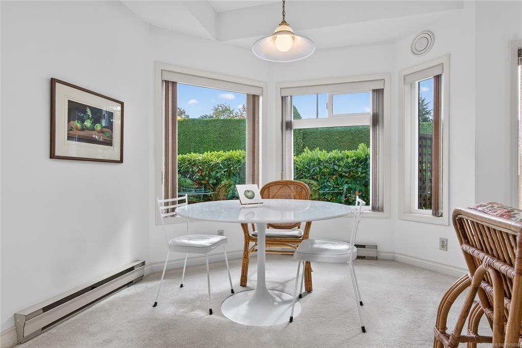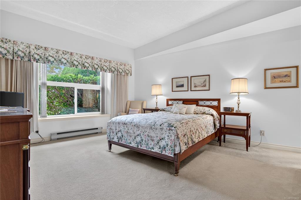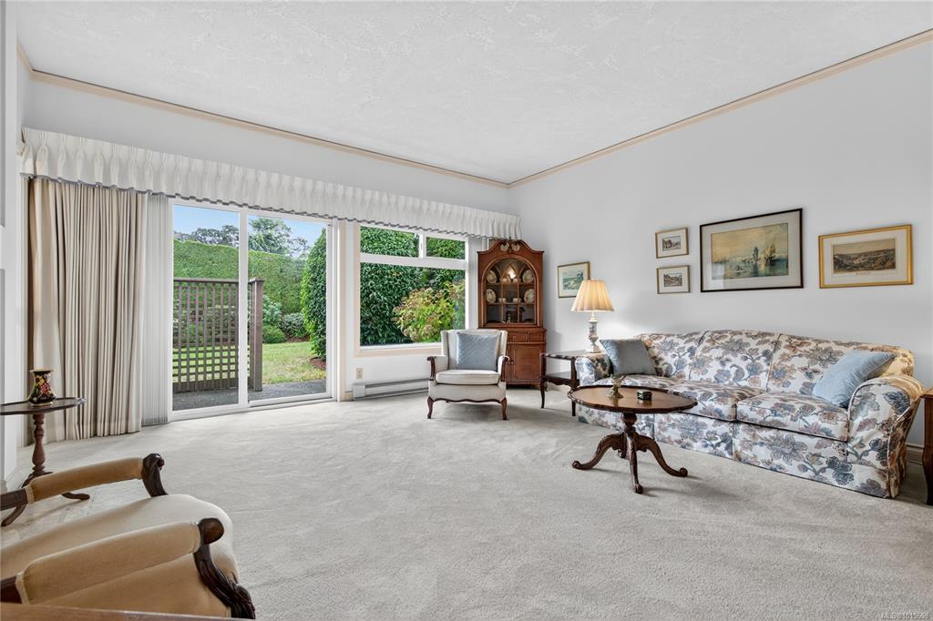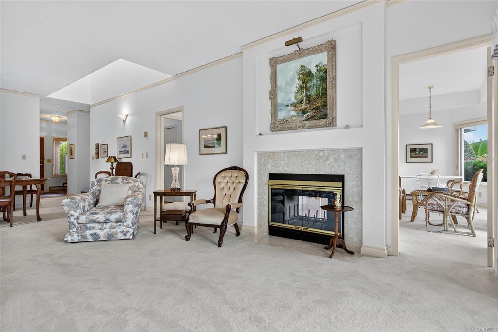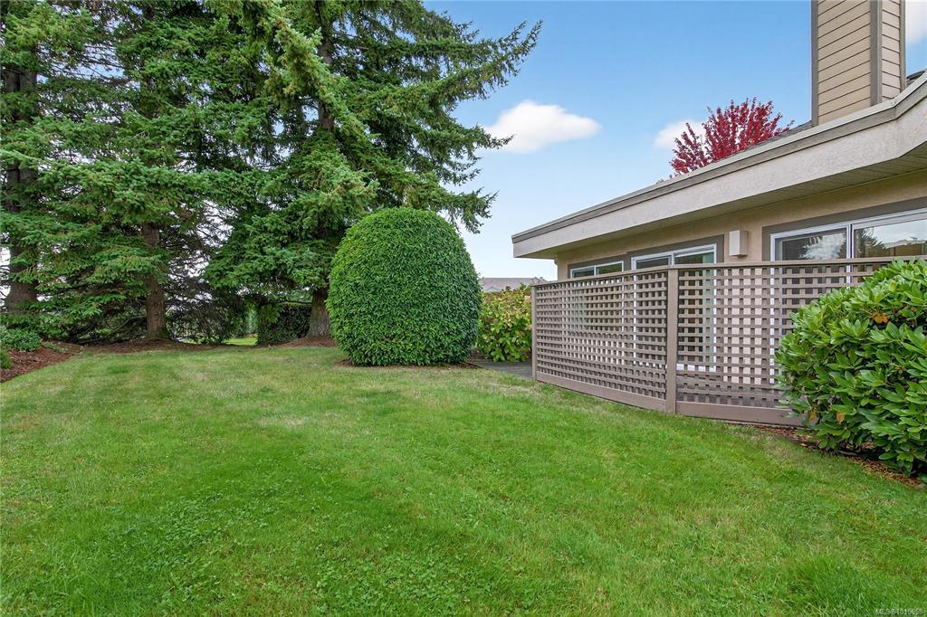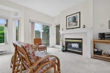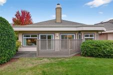 One-level rancher townhome located in the highly desirable Foxborough Hills complex in Broadmead. This upscale community is known for its beautifully maintained gardens & outstanding amenities, including a recreation center with an indoor pool, hot tub, sauna, fitness room, library, games room, common kitchen, 2 guest suites for visiting family or friends. Residents also enjoy shared tennis/pickleball court. The complex borders the scenic trails of Rithet's Bog & is within walking distance to everyday amenities. This end-unit home features extra windows & just one shared wall, providing added natural light. Inside, you'll find two bedrooms, spacious formal living & dining area, bright kitchen that opens to a cozy family room with two-way fireplace & access to a south-facing patio surrounded by lush landscaping. The primary bedroom includes a generous 5-piece ensuite & a walk-in closet. Additional highlights include a full-size laundry room, double garage & crawlspace for extra storage.