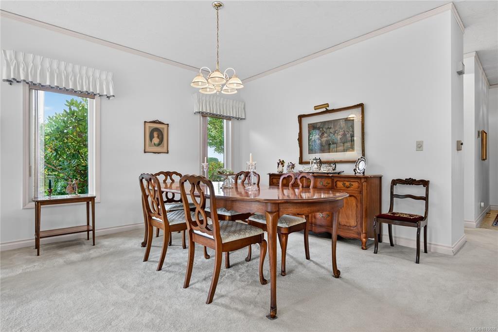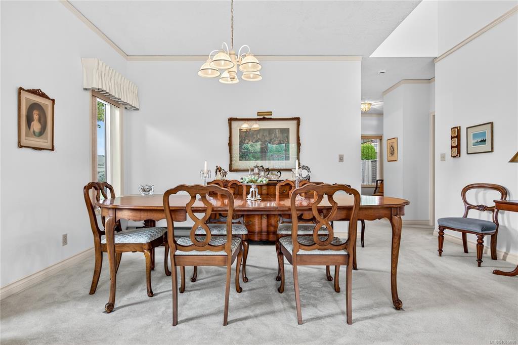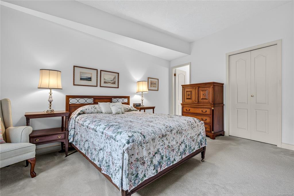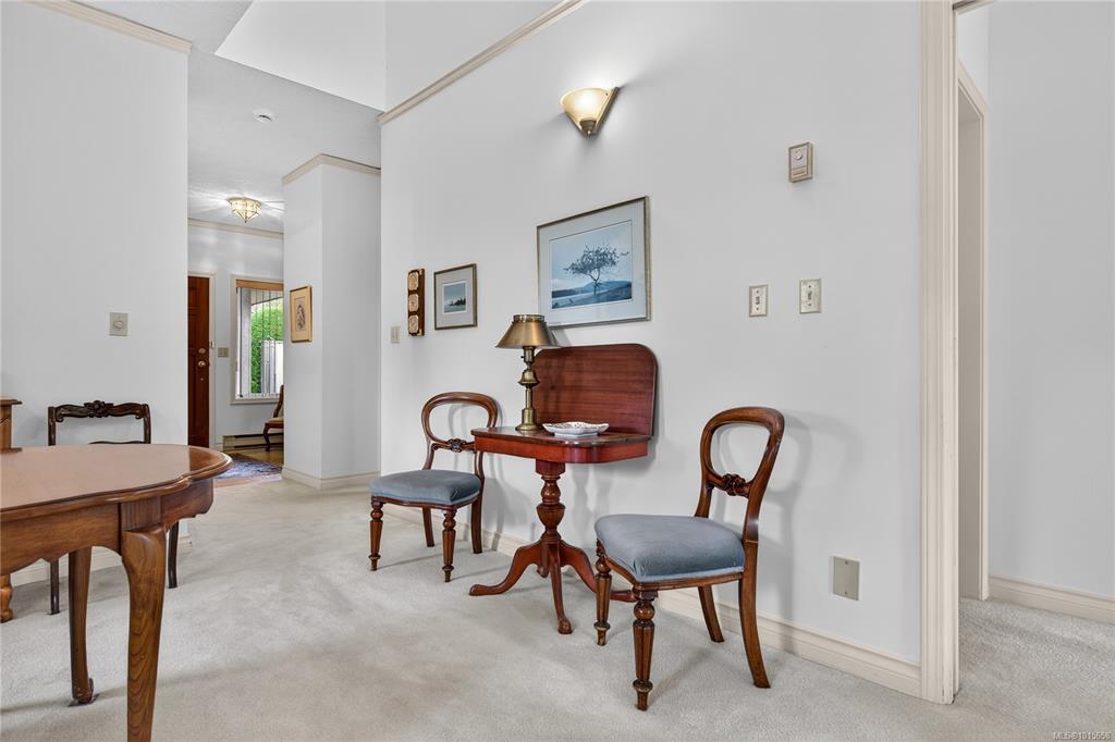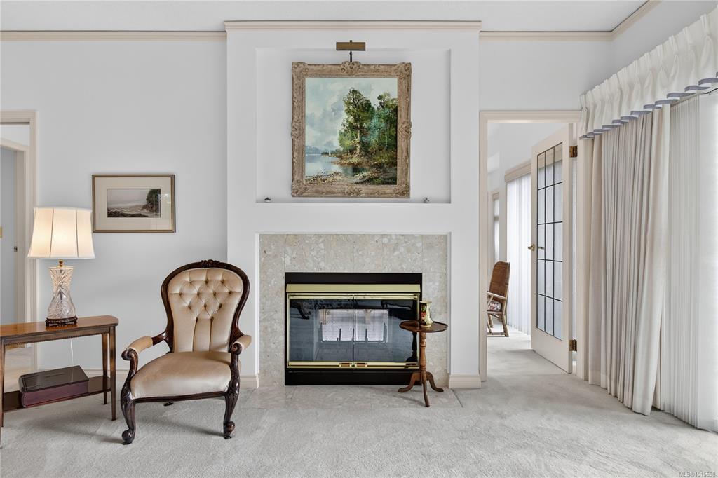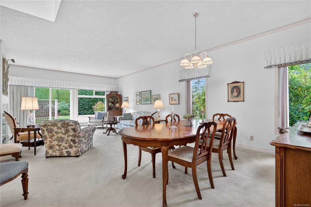 One-level rancher townhome located in the highly desirable Foxborough Hills complex in Broadmead. This upscale community is known for its beautifully maintained gardens & outstanding amenities, including a recreation center with an indoor pool, hot tub, sauna, fitness room, library, games room, common kitchen, 2 guest suites for visiting family or friends. Residents also enjoy shared tennis/pickleball court. The complex borders the scenic trails of Rithet's Bog & is within walking distance to everyday amenities. This end-unit home features extra windows & just one shared wall, providing added natural light. Inside, you'll find two bedrooms, spacious formal living & dining area, bright kitchen that opens to a cozy family room with two-way fireplace & access to a south-facing patio surrounded by lush landscaping. The primary bedroom includes a generous 5-piece ensuite & a walk-in closet. Additional highlights include a full-size laundry room, double garage & crawlspace for extra storage.