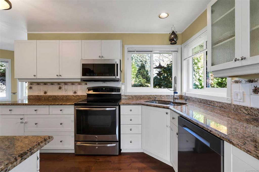Open house Sun 1-3pm. Experience comfort, style, and privacy in this beautifully maintained home. Nestled in a quiet cul-de-sac among other well-kept properties, this stunning home offers the perfect blend of function and charm. The expansive, fully fenced backyard is your own private retreat—featuring mature gardens, a variety of fruit trees, a golf putting green, and a massive studio/workshop ideal for hobbies. Inside, the home boasts a thoughtfully designed floor plan with a cozy den and a family room on the main level, and three spacious bedrooms upstairs. The living room impresses with its soaring vaulted ceiling, a grand cathedral window, and a warm gas fireplace—perfect for relaxing evenings. The bright white kitchen is a chef’s delight, featuring granite countertops,  stainless steel appliances, a sunny breakfast nook, and gleaming hardwood floors. Double garages & spacious crawl space. It’s truly a home you will love to live in.