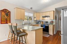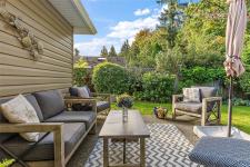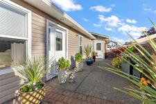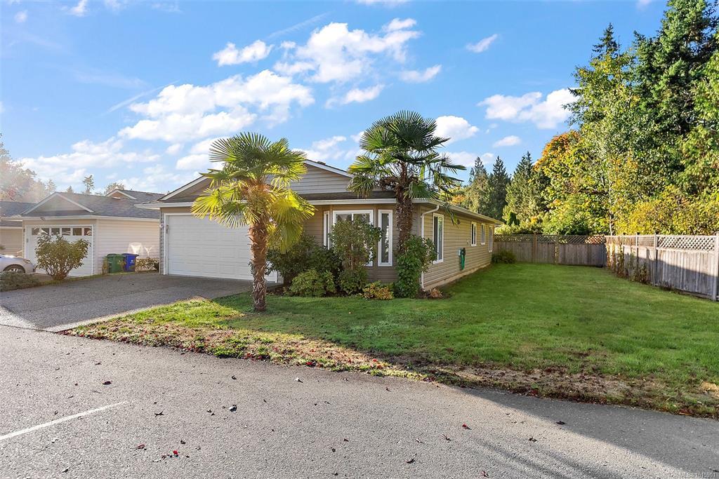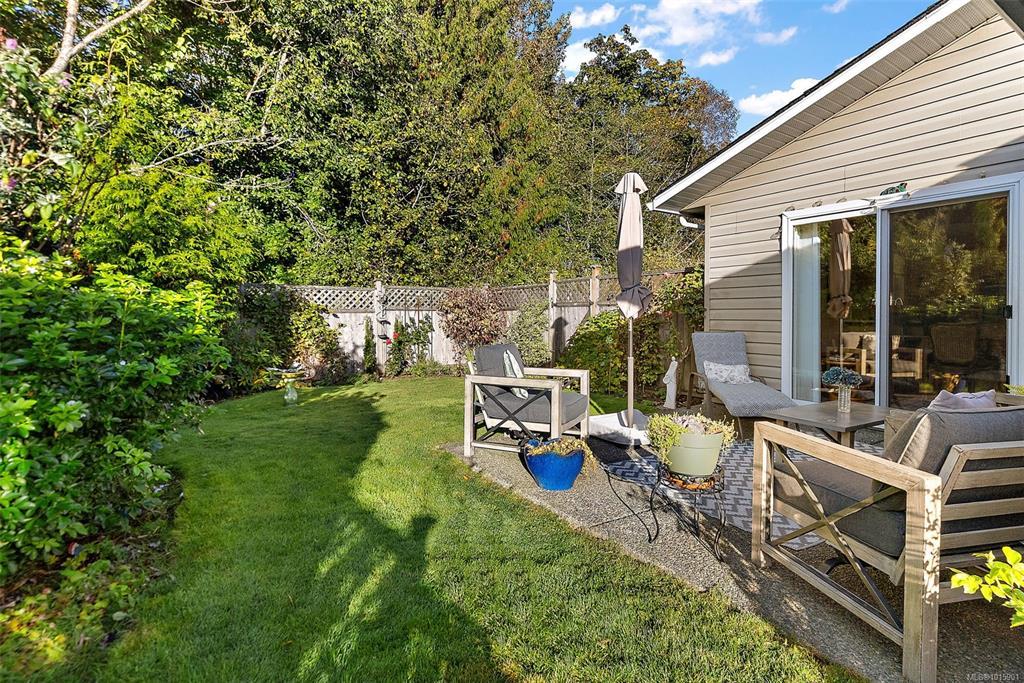 Welcome to Hawthorne Village, a friendly 55+ community in Central Saanich known for its peaceful setting and neighbourly feel. This detached 2-bedroom, 2-bath home offers comfortable single-level living at the quiet end of the street beside a forested green space. The bright, open layout features a spacious kitchen with ample cabinetry, a large living area, and two generous bedrooms that easily fit king-sized furniture. Enjoy morning coffee or afternoon sunshine on one of two patios surrounded by perennials, and take advantage of the attached double garage with room for storage or hobbies. Freshly maintained and ready for your personal touches, this home presents an affordable opportunity to enjoy privacy, convenience, and connection just minutes from shopping, parks, and all amenities in Central Saanich.