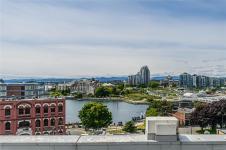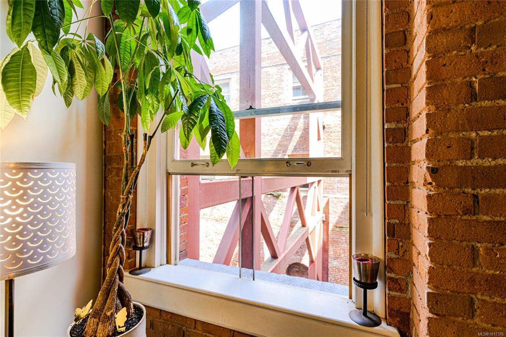 Welcome to The Leiser, a landmark brick building in the heart of Downtown Victoria. Originally built in 1896, this iconic structure was transformed in 2008, reimagined into stylish loft-style condos that beautifully fuse architectural character with contemporary finishes. The suite boasts nearly 14-foot ceilings adorned with a grand original window, framed in lovingly restored wood casings and meticulously restored brickwork. Inside, discover a chicly designed living space, in-suite laundry, and a modern kitchen with quartz countertops. Building amenities include bike storage, a separate storage locker, and a full rooftop patio offering breathtaking 360-degree ocean and city views. Just steps away from the stunning waterfront walkway, vibrant Oldtown, shops, restaurants, and attractions. This property invites you to embrace the walking and biking lifestyle while owning a piece of the city's rich history. Charming, convenient, and pets are welcome. Vacant and easy to show!