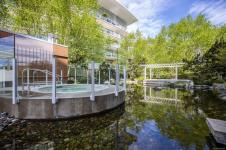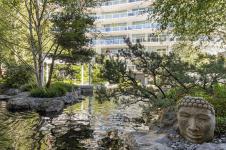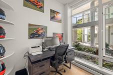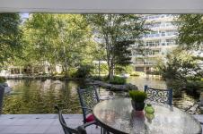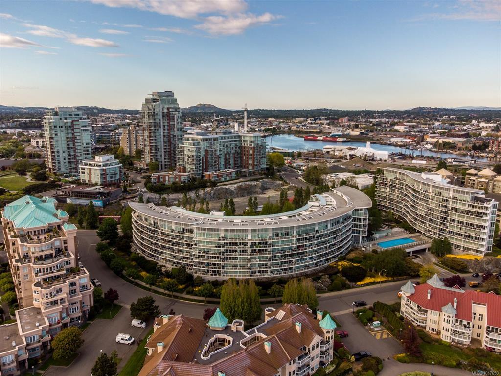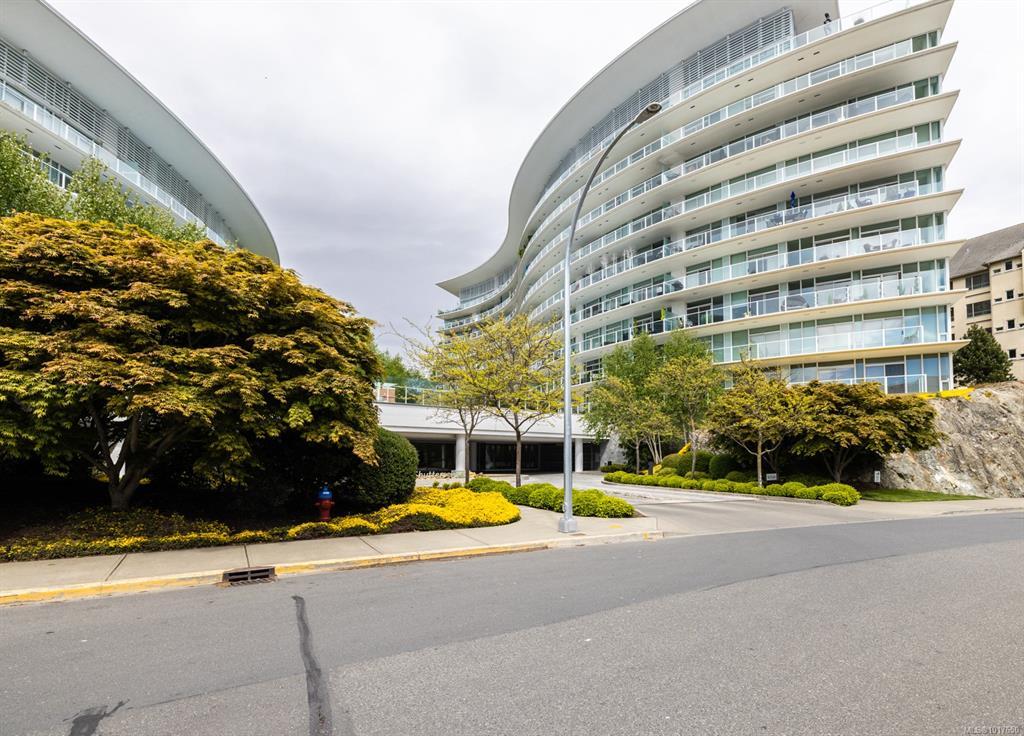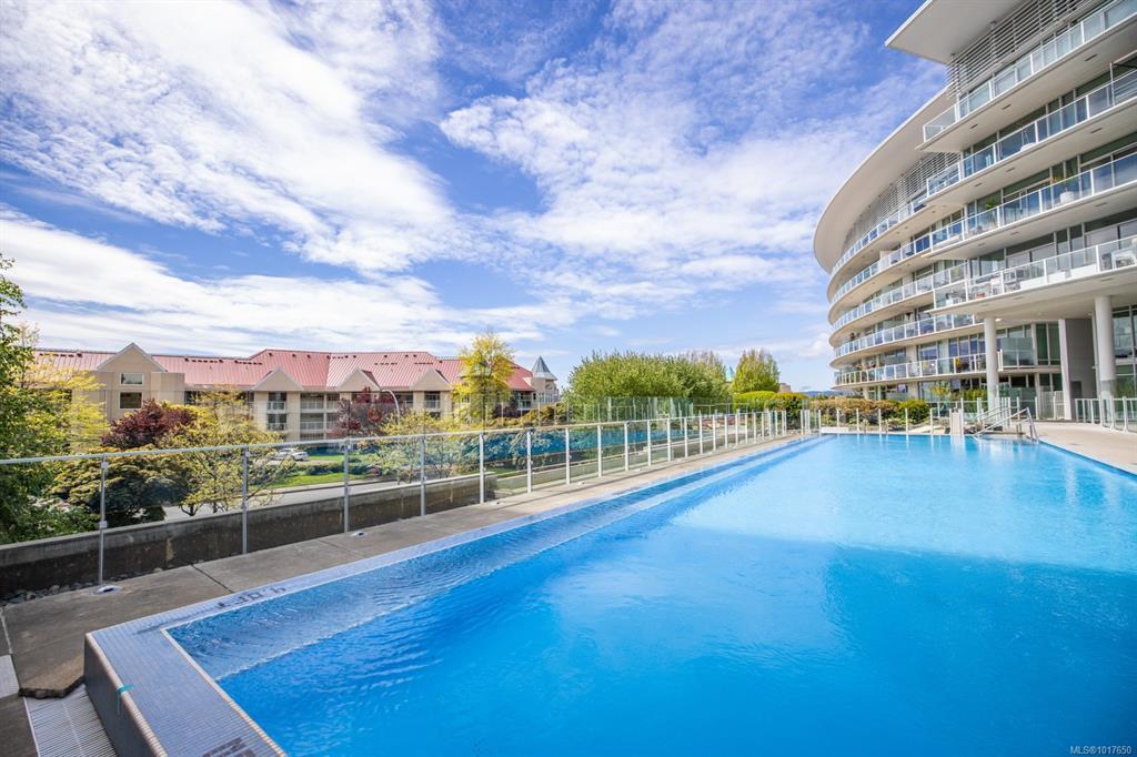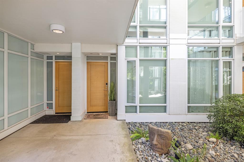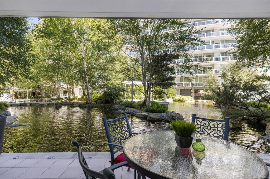 Welcome to The Shutters - where architectural excellence meets spa-like tranquillity. This 1-bed + den, 2-bath condo has a rare & private exterior front entrance, bringing a townhome feel to condo living. Surrounded by water, this unique unit has a patio that backs onto a serene pond, which offers a stunning view out of the floor-to-ceiling windows as well as plenty of room for outdoor dining and enjoyment. Inside, you'll find spacious and bright rooms, a modern kitchen, and luxe bathrooms. Overlooking the inner harbour, the building sits steps from the Songhees walkway, Galloping Goose trail, markets, restaurants, and downtown shopping. The resort-style amenities in this exclusive complex include an amazing outdoor pool, a gym, a hot tub, a sauna, a steam room, a guest suite, a lounge, a boardroom, guest parking, & kayak/bike storage. One designated parking stall & storage included. This is your opportunity to own a one-of-a-kind unit in this exceptionally renowned building!