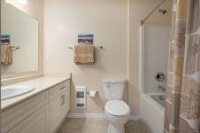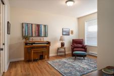 Rare 2 Bdrm, 2 Bath bright & sunny south facing unit in Madison Ct. This unique 55+ complex consists of individual patio homes with a shared community space. Maint. fees incl weekly light housekeeping. This one level patio home designed for accessibility & care free living has much to offer while you age in place. New hot water tank, updated flooring, blinds, vaulted ceiling, open floor plan and large south facing windows that flood the suite with natural light. You can access your unit from the south facing patio and private entrance or enter through the secured main door with intercom system. The community social space has comfy seating around a gas fireplace and a common area where you can enjoy puzzles or games with the neighbours, and you can plant your veggies in the community garden. Laundry is included in fees and a only a few steps from the unit. Enjoy sharing with only seven neighbouring suites in your building. Non-smoking building & 1 small dog or cat friendly (see bylaws).