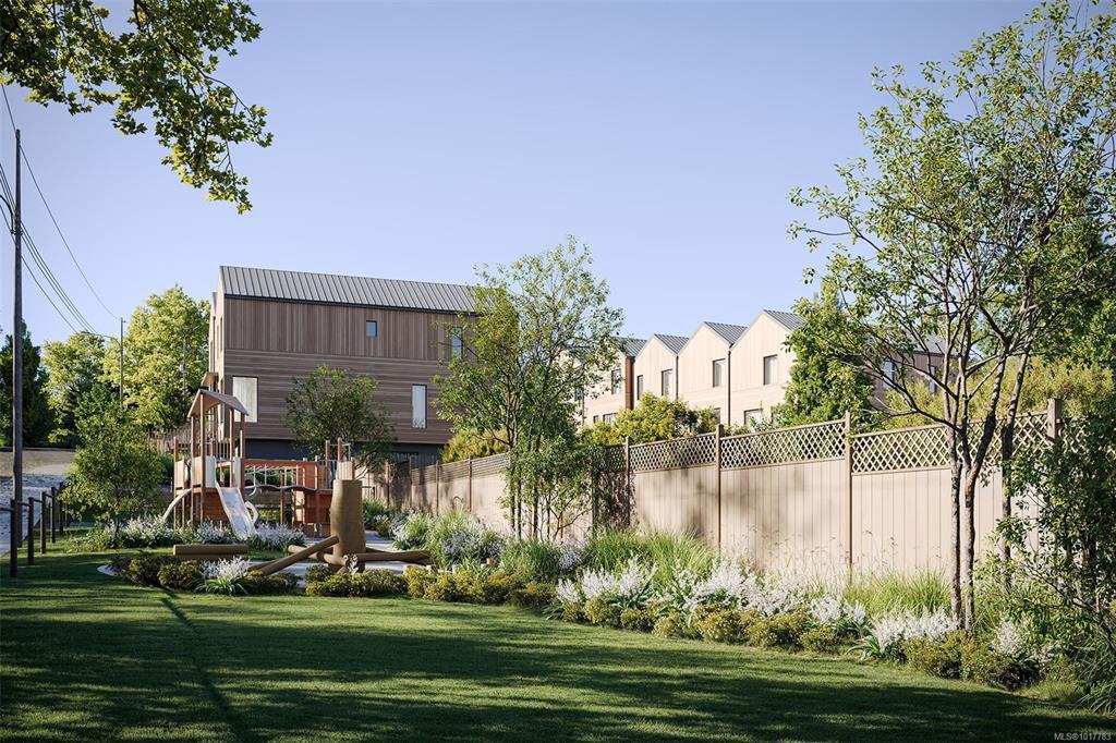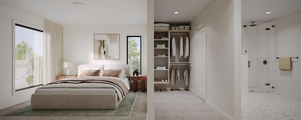 Introducing Harper by Formwell, a noteworthy collection of coastal modern townhomes in the lush and tree-lined Cedar Hill neighbourhood. Overlooking a quiet cul-de-sac, this striking home boasts enduring architecture and single-family home inspired living with an expansive south-facing 200sf patio, separate balcony, and an attached garage. A meticulously refined interior, designed by Bidgood, overflows with beauty and functionality, featuring an elevated kitchen with slim-shaker cabinetry, generous built-ins, Caesarstone counters and built-in wall oven and induction cooktop by Bosch. Tranquility and convenience are infused throughout the upper floor, with three generous bedrooms, main bathroom, and laundry with separate linen closet. Primary features a voluminous walk-in closet and lavish ensuite with custom cabinetry and terrazzo heated tile flooring. Downstairs, enjoy a fourth bedroom and ample storage. Comfortable living with ERV and A/C. Completing in spring 2026. Price + GST.