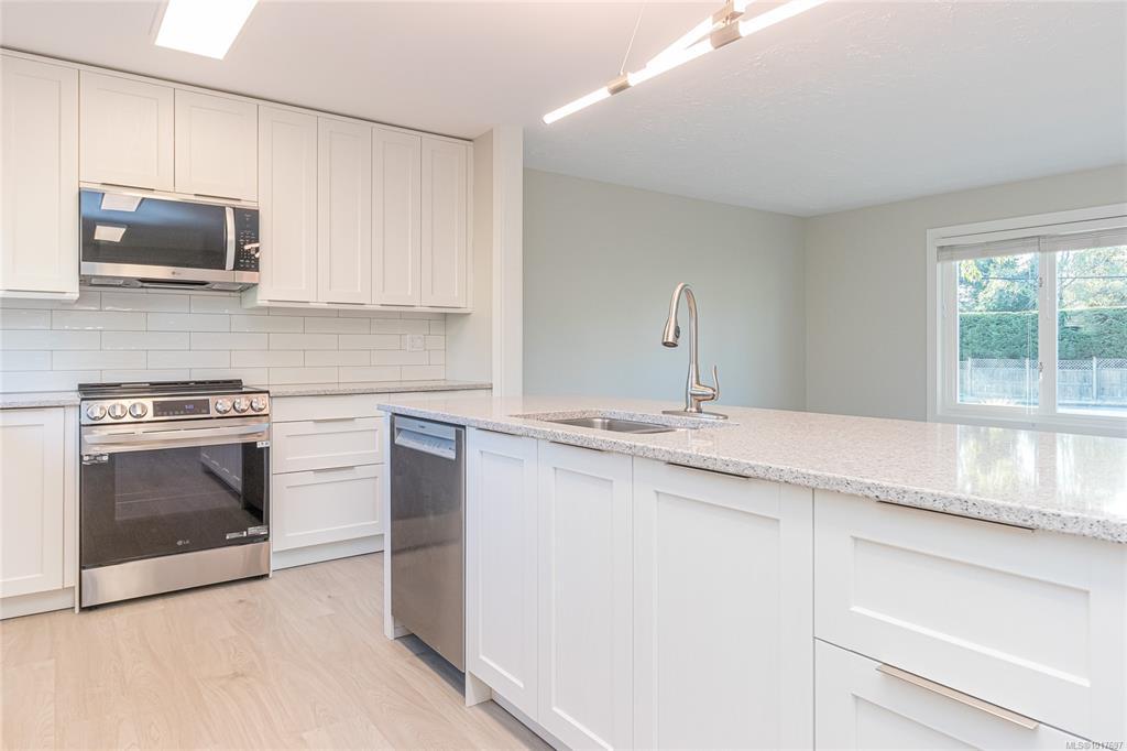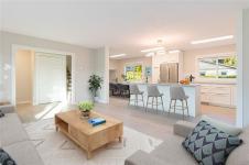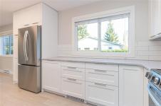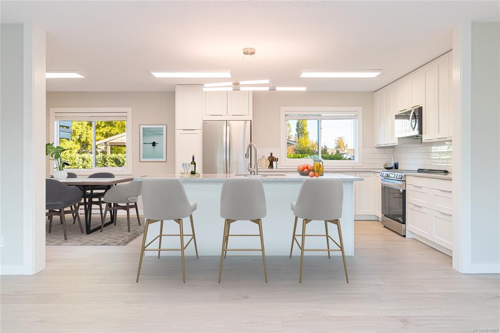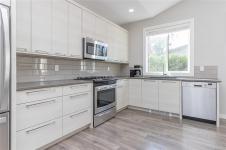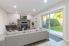 Two beautiful homes with great separation and privacy. Central location! The fully renovated 3 level split, 3-bedroom main house including master with ensuite and an office for work from home opportunities is full of light with updated windows, bathrooms, all new flooring and a new kitchen with new ss appliances and Handstone quartz countertops. New LED lighting and bb heaters and thermostats throughout. Beautiful wood and glass railings and woodburning fireplace that is refaced in natural stone veneer. The secondary dwelling is a 969sf carriage house built in 2018 and provides a suite perfect for multigenerational living or future rental income. It has a gas stove and fireplace, master bedroom with ensuite, full kitchen, living and flex room that could be a work from home office, or transforms to a guest bedroom with its own ensuite. The property has lots of parking, updated low maintenance and easy-care landscaping including an exposed aggregate entry level patio to Carriage Home.