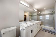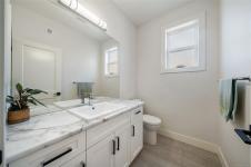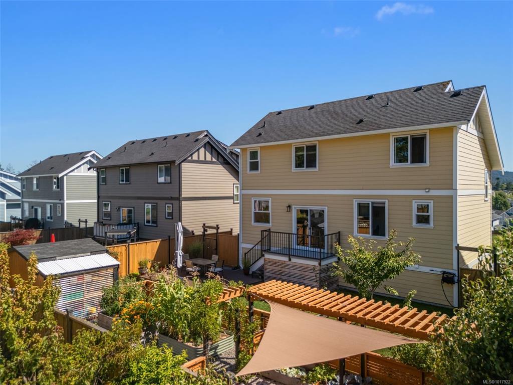 Welcome to a truly remarkable home where modern convenience meets sustainable living. This property is designed for both comfort and efficiency. This 3 bedroom, 4 bathroom, w/ a legal 1 bedroom suite w/ separate entrance & patio area w/ room in driveway for parking. Perfect for adult children or mortgage helper. As you enter through the cathedral style entry up a few steps into a bright custom kitchen w/ quartz countertops, tile backsplash, natural gas stove w/ a large island for entertaining. Sun-filled living room w/ natural gas fireplace opens to a balcony perfect place to sip your morning coffee. Office on main & 2 piece bathroom. Upstairs has 3 bedrooms & two bathrooms. The primary has spa-like ensuite, walk-in closet. 31 solar panels w/ 2 inverters, EV hookup w/ level 2 charger, hot water on demand, backyard w/ greenhouse, work shed, above ground garden beds for veggies, w/ fruit trees. Steps to schools, parks & amenities on a cul-de-sac. This home has it all.