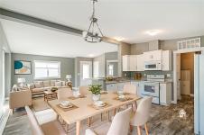 Welcome to your dream home in the sought-after Sharman’s Mobile Home Park, a peaceful 55+ community offering the perfect blend of comfort and convenience. This brand-new 2024 manufactured home features 2 bedrooms, a den, and 2 beautifully finished bathrooms, providing a modern and spacious layout ideal for downsizing in style. Enjoy the open-concept living area with vaulted ceilings and large windows that fill the space with natural light. The contemporary kitchen includes matching white appliances, ample cabinetry, and a generous island—perfect for entertaining or everyday living. The primary suite offers a large closet and a 4-piece ensuite with double sinks and a tiled shower. Ideally located within walking distance to Superstore, restaurants, shops, parks, and transit. A rare opportunity for modern living in a vibrant community. All measurements are approximate; verify if important. Price is plus GST.