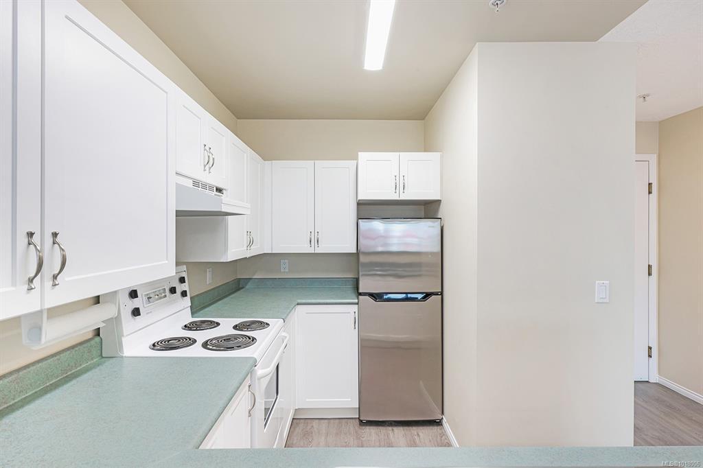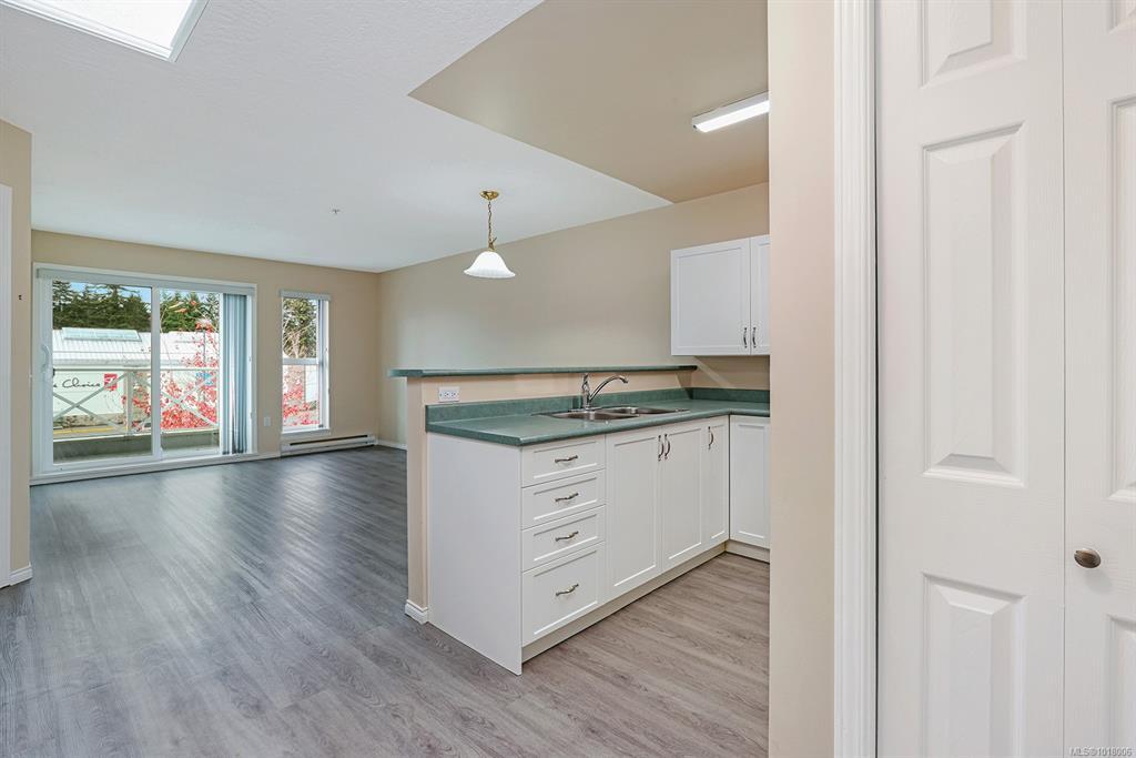 Stevenson Place stands as one of the Comox Valley's preferred 55+ communities, designed for those who value independence while appreciating the benefits of well-managed supportive living. This sunny top-floor unit features updated cabinets and vinyl plank flooring, with a skylight to brighten the winter days ahead. The balcony offers glimpses of the mountains and Comox Glacier, and the thoughtfully compact layout means less time on maintenance; more time enjoying life. Ideally situated in the heart of Comox, you're steps from the Mall, restaurants, parks, health services, marina, and golf club. The complex provides evening meals, weekly housekeeping and linen service, plus 24/7 staffing for security and emergency response. Premium amenities include a rentable guest suite, shared laundry, on-site hair salon, and numerous areas for reading or socializing. One small pet is welcome with approval (under 6.8kg). All measurements should be verified if important. Quick possession available.