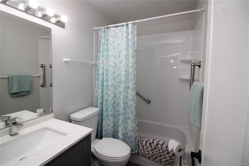 Welcome home to Station Ridge and this turnkey renovated 2 bed, 2 bath unit located in the seaside community of Chemainus. This home features many upgrades since 2019: kitchen, bathrooms, vinyl plank flooring, heat pump, lighting, blinds, paint, garage door, hot water tank, patio fencing + motorized awning for back patio (2023). The kitchen boasts new cabinetry, appliances, + walk through pantry with laundry/utility closet. Open concept living/dining area is bright and welcoming, w/newer NG fireplace insert (2016) + access to the back patio and gardens. Primary includes walk-in closet + 3 pc ensuite. Single attached garage with nook for a workbench and inside entry into the kitchen. No age restrictions, no long term rental restrictions, 1 dog up to 25 lbs OR 1 cat (per strata bylaws). Tastefully remodelled, there's nothing to do but move in and enjoy low maintenance living within walking distance to restaurants, shops, services, amenities and schools.