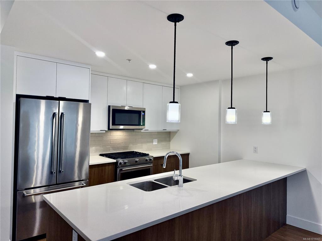 Stylish and spacious townhome in prime location! This beautifully designed 4 bedroom, 4 bathroom townhome offers over four levels of comfortable living. Just 3 years old, this home features a spacious living room with a natural gas fireplace, a large kitchen with quartz countertops, quality Kitchenaid appliances, and a built-in wine fridge. The dining area is ideal for family gatherings and entertaining. The primary bedroom is conveniently located on the ground level with a walk-in closet and ensuite, while two additional bedrooms upstairs provide excellent space for family or guests. The lower level includes a studio suite with kitchenette, perfect for in-laws, guests, or mortgage helper potential. Located minutes from shopping, schools, parks, and all amenities, this home offers modern comfort, practicality, and great value in a growing community. Must be seen! All data and measurements are approximate, must be verified if important.