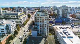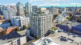 Live in style at The Juliet! This bright, open 1-bedroom condo is offering the perfect blend of lifestyle and investment. The modern kitchen features stainless steel appliances and granite counters, while the spacious living area opens to a large patio, your downtown retreat. The unit includes in-suite laundry, secure parking, and a storage locker. Enjoy sweeping city views from the rooftop patio, complete with BBQs and lounge space. Pet-friendly with no rental restrictions, and just steps from restaurants, shops, and Victoria’s vibrant core. This is downtown living done right!