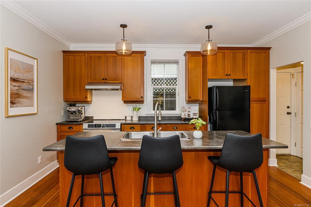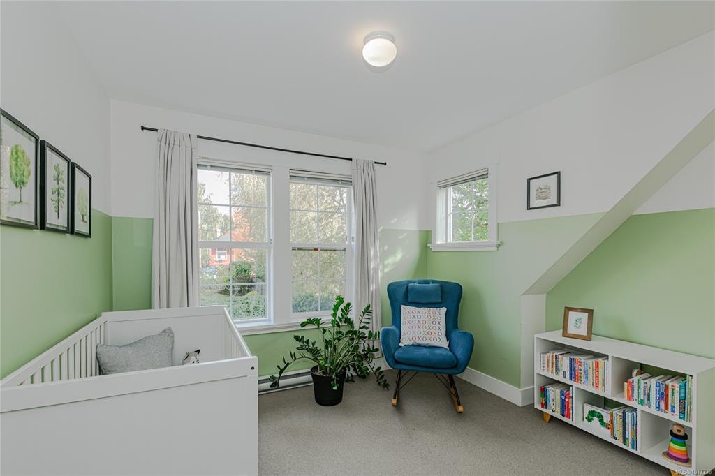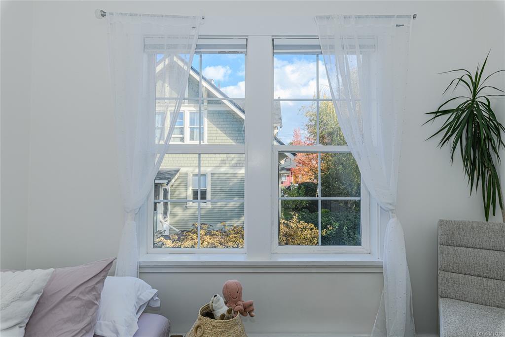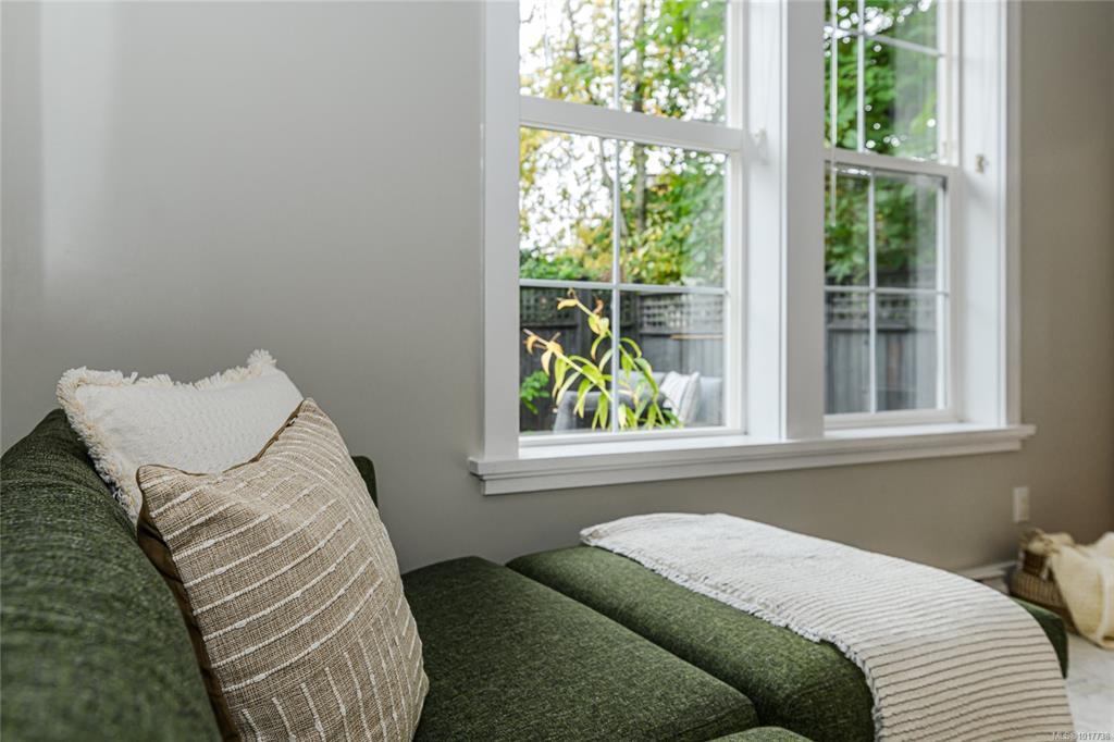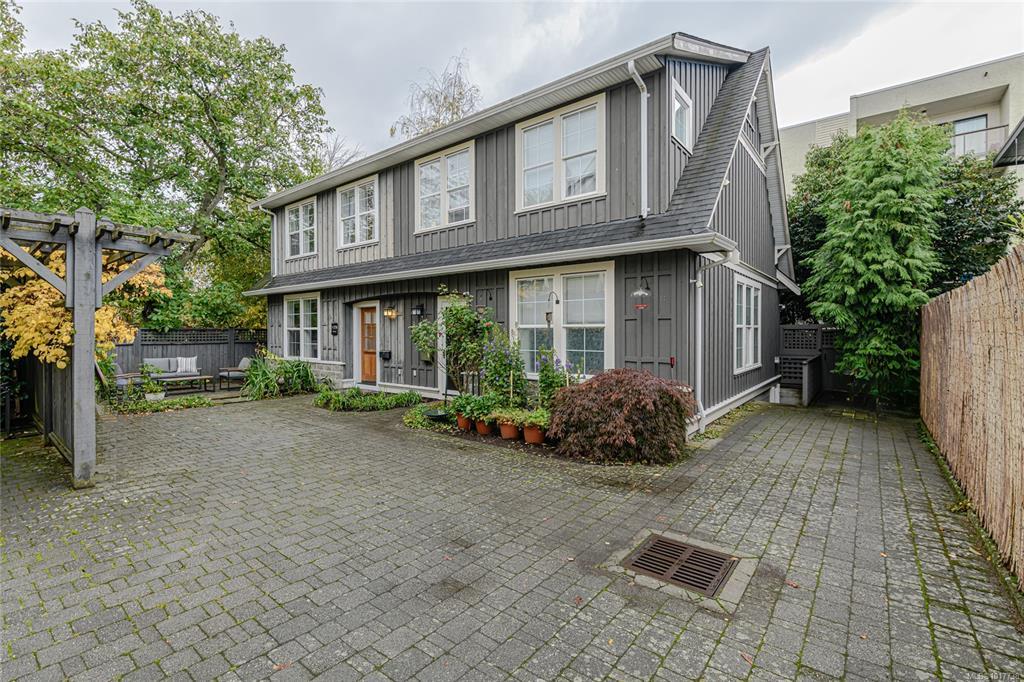 Tucked away at the back of a quiet enclave, this 2004-built strata duplex by Bruce Wilkins offers a rare combination of privacy, space, and walkability. The main floor features high ceilings, fir floors, a modern kitchen, and an open layout that makes everyday living and entertaining easy. Upstairs are three comfortable bedrooms, each with generous closets—the spacious primary bedroom is large enough to accommodate a home office or reading nook. One of the standout features is the incredible crawlspace—approximately 4’6” high at the rear and tapering slightly toward the front—spanning the full footprint of the house and providing an abundance of dry, easily accessible storage rarely found in homes like this. Outside, enjoy both a private front patio and a low-maintenance rear patio, all in a super walkable location close to parks, cafés, and shopping in Quadra Village. Perfect for first-time buyers, young families, or downsizers seeking a quiet home in a central location.