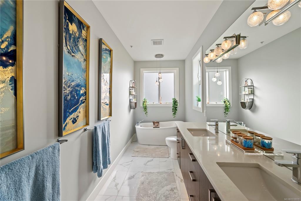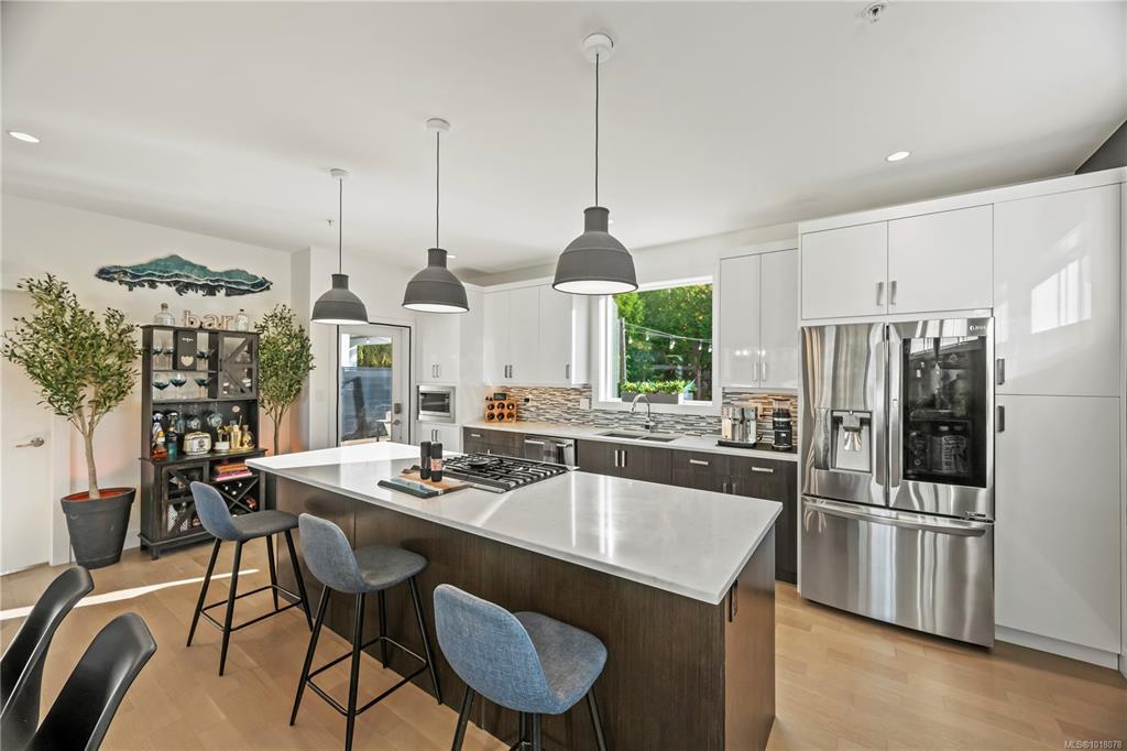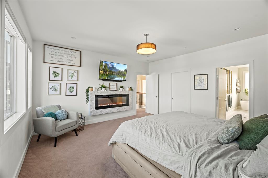 Welcome to 1167 River Rock Place — a modern West Coast home tucked away on one of Bear Mountain’s most desirable cul-de-sacs. Inside, an expansive open-concept floor plan is filled with natural light from oversized windows framing views of Mt. Finlayson. The kitchen features quartz counters and flows seamlessly into the bright living area with a cozy gas fireplace and dedicated home office, which can double as a bedroom nearby. Upstairs are three spacious bedrooms, including a primary with fireplace and spa-inspired ensuite. The converted crawl space creates a perfect home theatre, while the double garage adds convenience. Outside, enjoy an oversized patio, fully fenced flat yard, hot-tub-ready setup, and space for a hammock. Complete with a heat pump, interior sprinkler systems and built-in vacuum, this home blends comfort, function, and lifestyle in a peaceful, well-established street surrounded by mature landscaping — ideal for professionals, executives, and families.