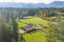 Welcome to this breathtaking 40-acre farm in Coombs, where panoramic mountain, field & forest views create an inspiring backdrop for rural living. A1 zoning allows endless possibilities—farm, equestrian, or private retreat. The property is fully fenced & cross-fenced, with internal roads linking open fields, forest & pasture for easy access. Five ponds (some for irrigation) connect to a peaceful stream, while four wells ensure abundant water. Outbuildings are fully serviced with power & water, including a Cow Barn with calving pen & manure pit, a Horse Barn with stalls, heated tack room & hay loft, an Implement Shed & a Workshop with stand stalls & storage. Two chicken coops, two dog kennels, a quail pen, and fruit trees enhance the land’s self-sufficient appeal. The handcrafted split-level farmhouse offers 3,945 sq ft, 4 bedrooms & 3 baths with custom millwork, fir & maple floors, & large windows framing the views. Peaceful, private & minutes from Qualicum Beach. Meas. Approx.