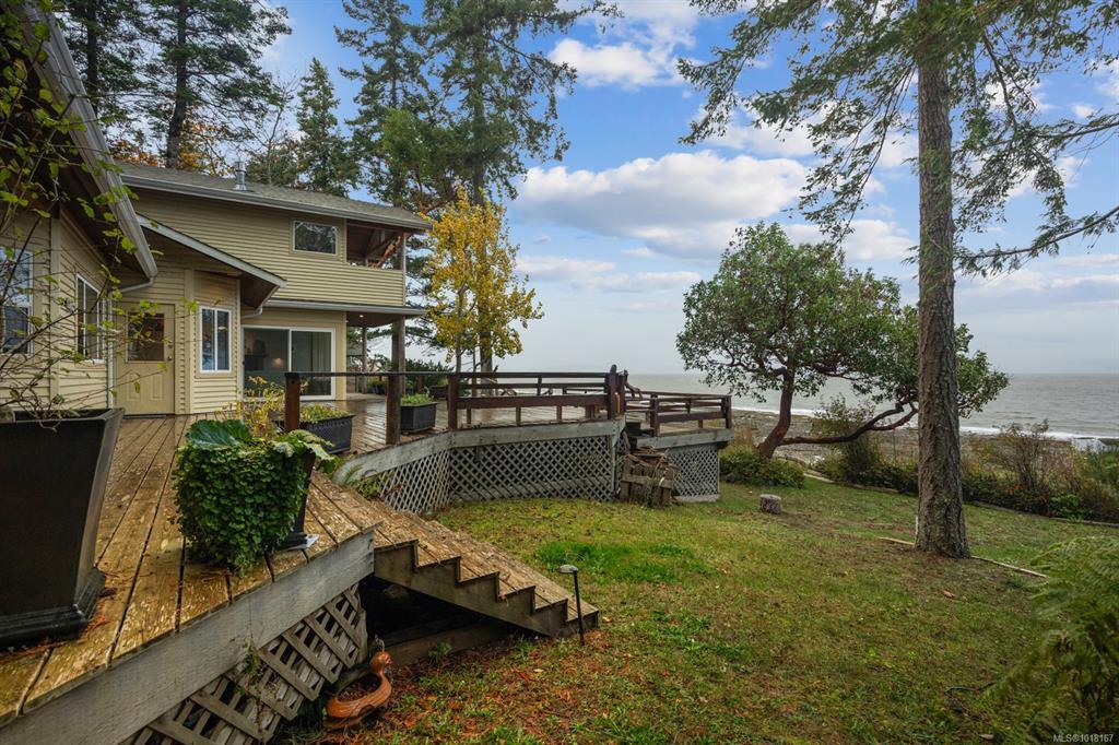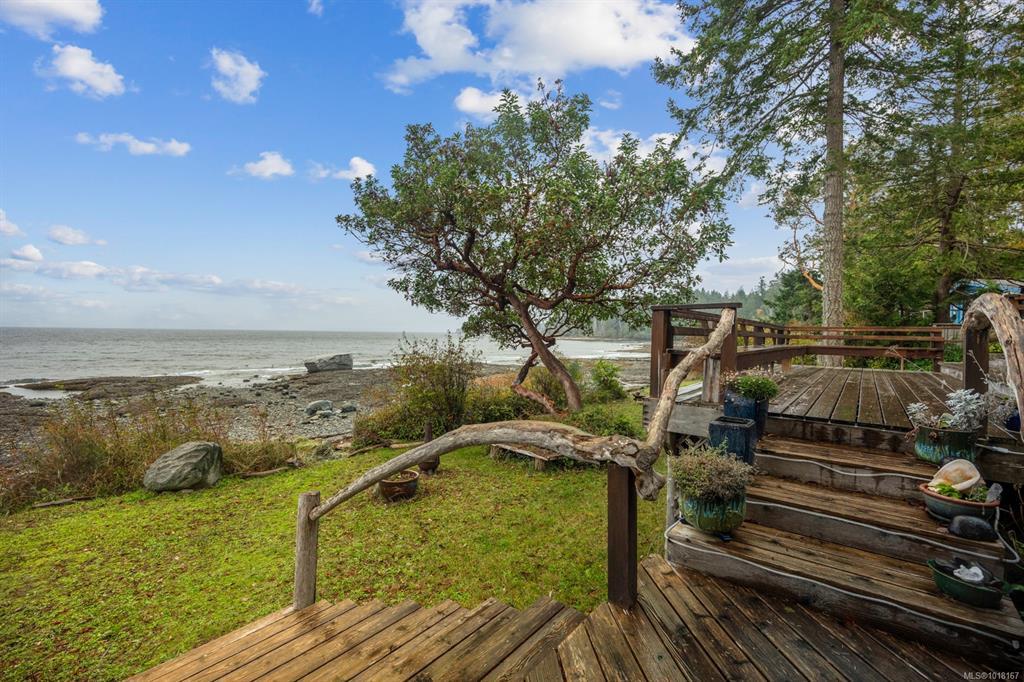 Walk-on waterfront offering privacy, purpose, and pride of ownership. Set on over half an acre, this thoughtfully designed 2,105 sq ft home blends comfort with quality craftsmanship.The spacious living room, kitchen, and sun-filled dining area showcase unobstructed ocean and mountain views. 3 bedrooms, with 2 on the main each featuring private outdoor access and an ensuite, provide exceptional livability. The upper-level suite includes a jacuzzi, fireplace, sitting area, and an ocean-view balcony. An ample 2-tiered deck invites relaxed outdoor living. Infrastructure includes a deep well, 3 cisterns, maintained septic system, 3 propane tanks, and storage buildings. Recent upgrades include the driveway, fencing, balcony beams, new hot water tanks, and lifetime-warranty sliding doors. Enjoy landscaped gardens, mature fruit trees, and a detached studio. Wake to ocean sunrises, watch moonlight dance across the water & welcome wildlife to your doorstep at this coastal Hornby Island retreat.