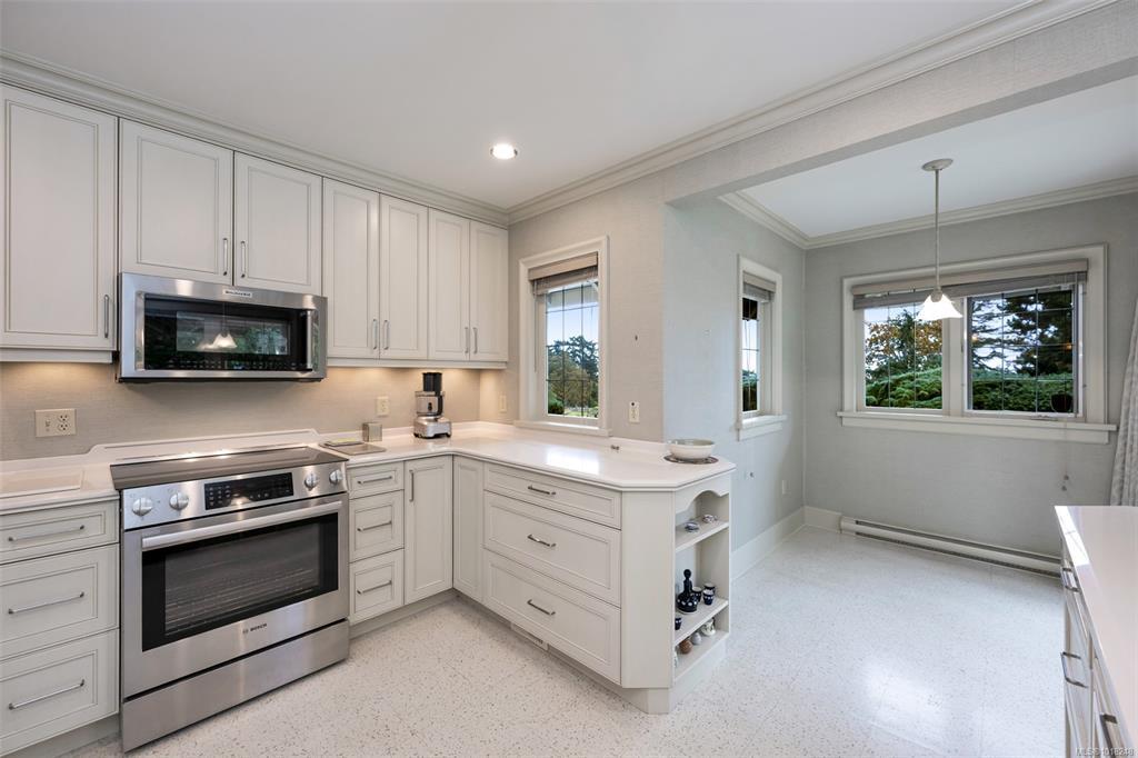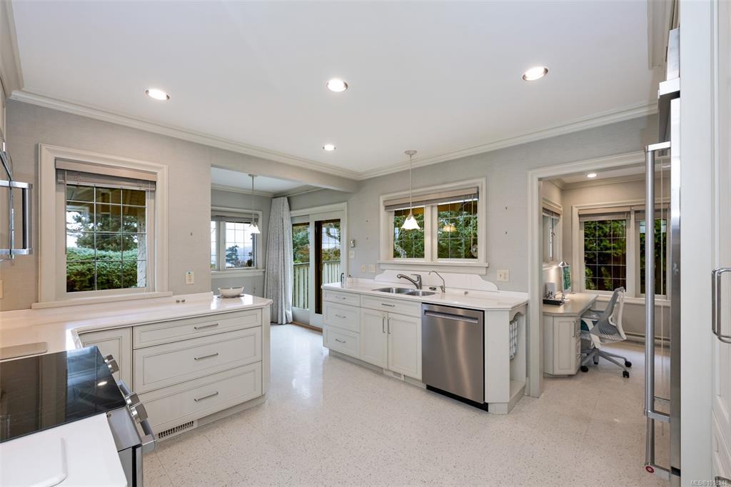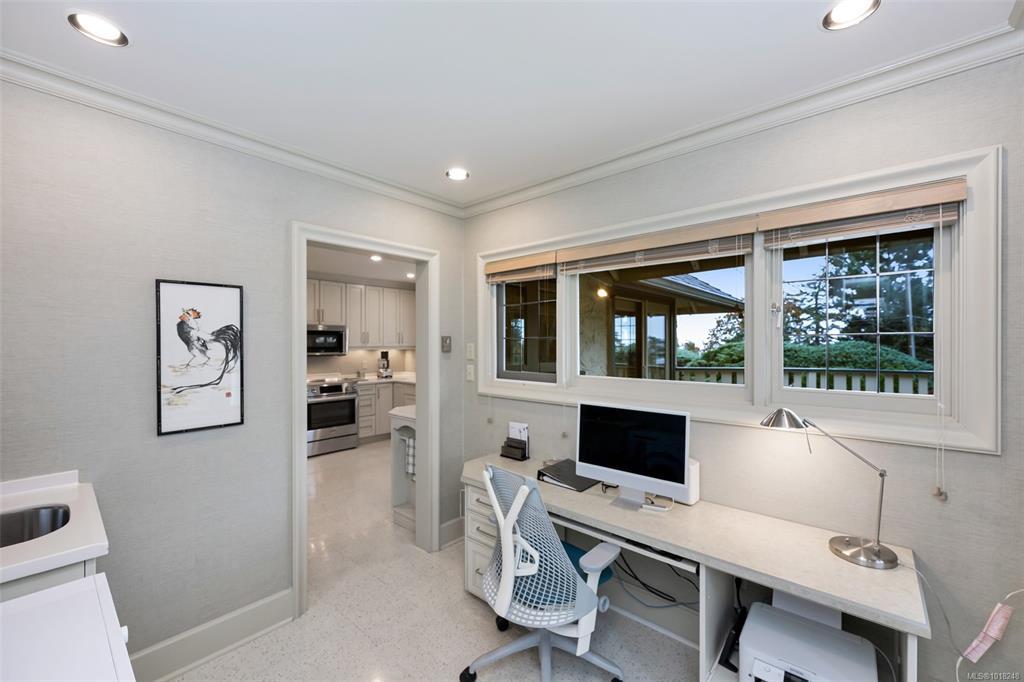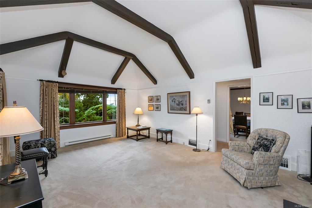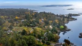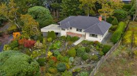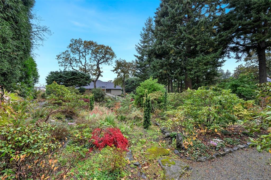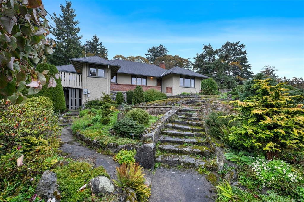 Welcome to your private sanctuary in Ten Mile Point, one of Victoria's most lovable seaside neighbourhoods. Set on nearly three-quarters of an acre of beautifully landscaped and fully fenced gardens, this meticulously cared-for home offers tranquility, spectacular views, and timeless charm. Inside, over 1,500 sq ft of thoughtfully designed living space features two bedrooms and two bathrooms, all on one level. The updated kitchen leads to a fantastic office space, and a large deck overlooking the gardens and water. The dining and living areas offer light and character, while being surrounded in nature. Every detail reflects pride of ownership and careful maintenance throughout. The unfinished basement offers ample storage and a versatile workshop space. Enjoy the best of both worlds - the privacy and natural beauty of Ten Mile Point, with convenient access to Cadboro Bay Village, walking trails, and the ocean just steps from your door. A truly special home in an exceptional setting.