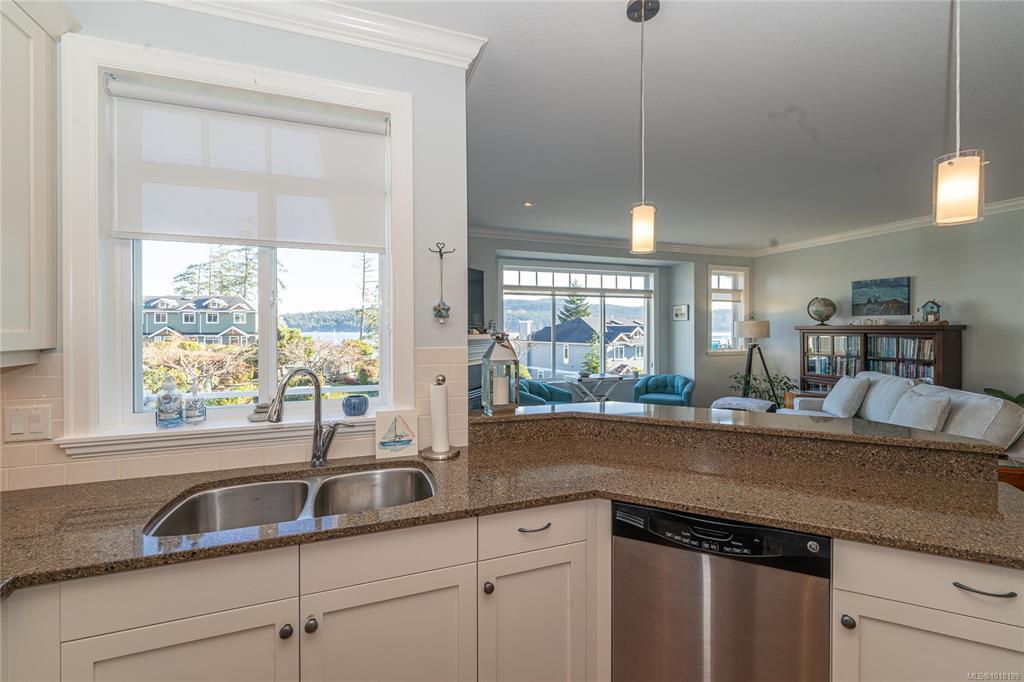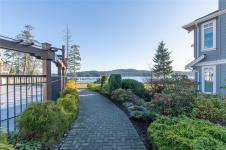 Rare Heron View town home offering some of the most magnificent, uplifting Ocean Views within this impressive oceanfront development. The upper main's elevated position overlooks the amenity centre & provides exhilarating views over the harbour, generous kitchen layout with quartz counters, SS appliances & gas cooking, white shaker cabinetry, mocha stained hardwood floors through the open concept main adjacent dining and spacious living room with gas fireplace and huge picture window to soak in those views! You'll love the master suite with NEW custom walk-in, ensuite & private patio with slider access. A 2nd large living room down with 2 bedrooms & 4 piece bath, rear patio round out the lower level. The townhome boasts a prized double garage with larger than average driveway. An amenity pkg beyond compare: Tennis, Swimming Pool, Gym, Sauna, Social Room, Social Gas Fire Pit. Nearby fine dining options, adjacent to marinas, launch your kayak from the private beach.