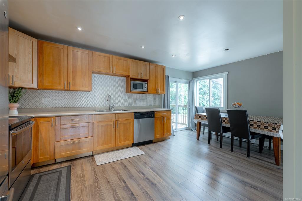 Welcome to this beautiful home with well used space & exceptional value. The main floor offers a well-designed layout with a large living area, defined dining space, & big kitchen featuring stainless steel appliances & plenty of cabinetry. A convenient 2-piece bathroom, laundry & storage under the stairs add functionality to this level. Upstairs, you'll find three generous size bedrooms & the 5-piece main bathroom. Hot water tank was changed in June 2025. Step outside to a large, fully fenced private backyard—ideal for children, pets, gardening, or relaxing in the summer sun. Located in a quiet spot at the end of a road, few minutes from VIU, Colliery Dam, University Village Mall, schools, amazing play parks for the kids and key transit routes, this home offers great value in a desirable neighborhood. all measurements are taken from a reliable source. Buyers to do their due diligence. Don't miss the opportunity to own this beautiful home.