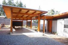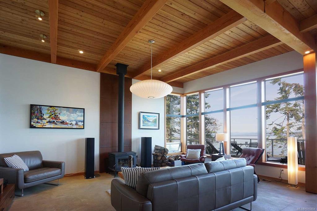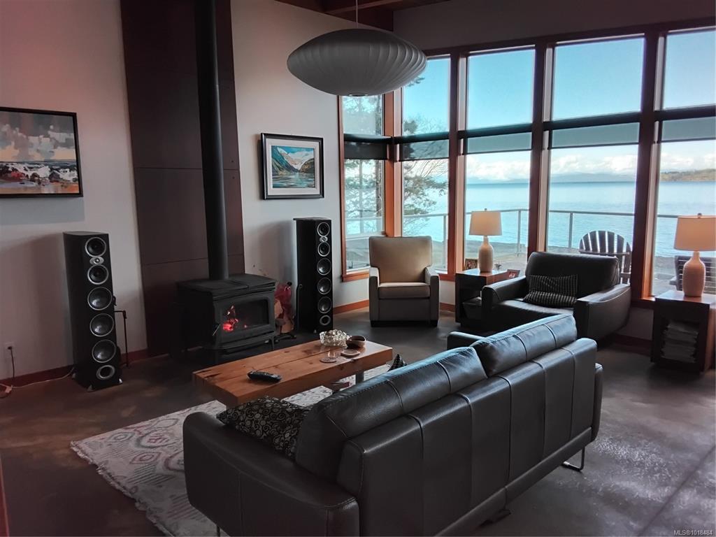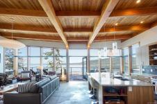 For the first time ever, the stunning Etienne Design Winged Cottage is on the market. This exceptional walk-on waterfront borne showcases the impeccable craftsmanship of Island Timber Frame and still includes over a year remaining on the new home warranty. Designed for longevity and beauty, the aluminum-clad exterior stands resilient against the coastal elements, while inside, warm fir timbers and polished concrete floors create a perfect blend of natural elegance and durability. The stone countertops complement the home's refined, coastal aesthetic, offering both sophistication and practicality. Cozy up by the wood stove and feel like you're on vacation every day, or enjoy the ease of in-floor heating -a modern touch that provides comfort year-round. Outside, you'll find covered parking, ample guest parking, and plenty of space for your recreational toys and storage. The fenced yard and easy beach access make this property ideal for enjoying an oceanfront lifestyle