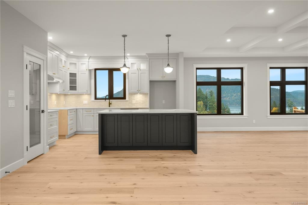 Brand new Cowichan Bay dream home with ocean & mountain views! This high end, semi-custom rancher offers over 2,000sqft of rare single-level living with 4 beds & 2 baths, plus a beautifully finished 2-bed legal suite below with its own entrance, driveway, a/c & hydro meter. The main floor features engineered hardwood, coffered ceilings, a feature fireplace with built-ins & stunning Fenstur windows. The custom kitchen includes a walk-in pantry & premium finishes. The spacious primary suite offers a walk-in closet, spa-style ensuite with heated floors & access to the covered patio & peaceful backyard to enjoy the view. Set on a large 0.25 acre lot with RV/boat parking, full landscaping & irrigation, oversized double garage & 900sq.ft walk in crawl space for additional storage. Built to Step 4 energy code with a gas furnace & heat pump for comfort year round. This is a rare, luxurious home in a tranquil, view-filled location with everything nearby that Cowichan Bay has to offer.
