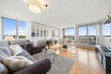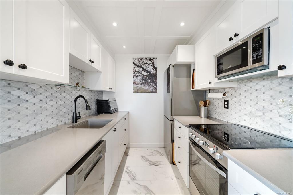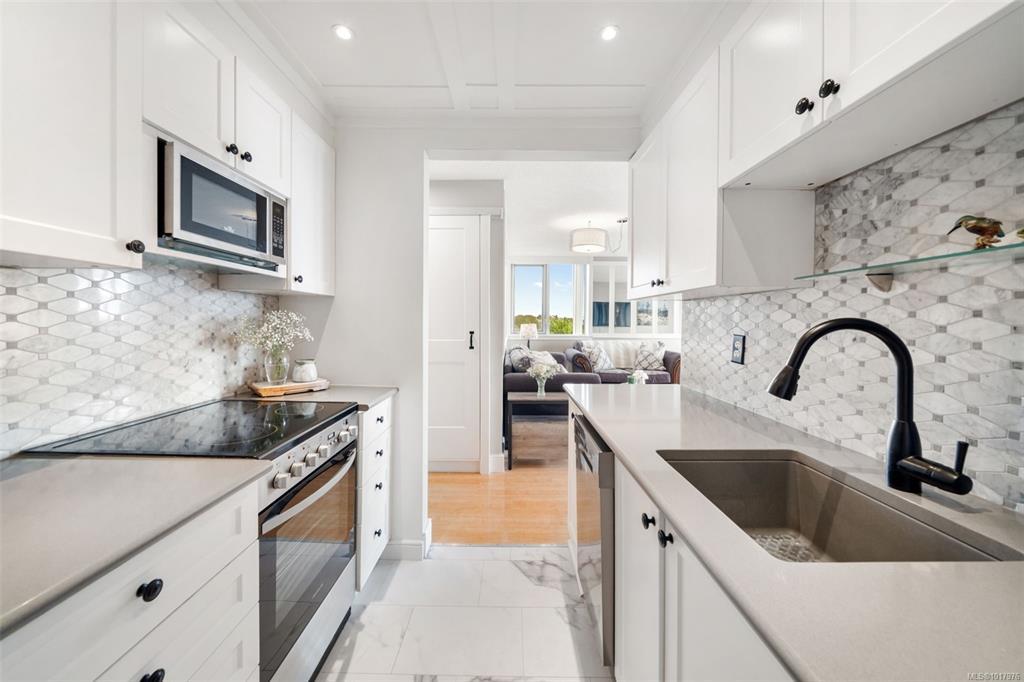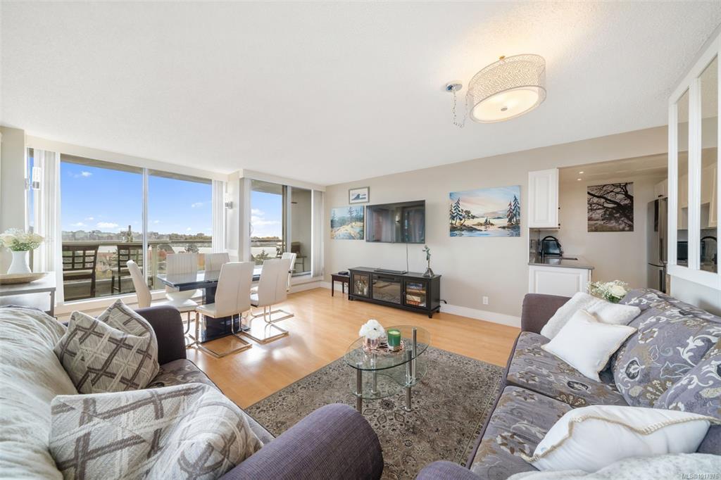 Wake up to breathtaking sunrises! The perfect way to start the day in this beautifully updated and comfortable, south-east facing condo. Enjoy stunning views of the Inner Harbour, Laurel Point, the ocean and the Olympic Mountains. This unit offers two spacious bedrooms and a tastefully renovated kitchen and bathroom. With a Walk Score of 85, it's just minutes away from parks, grocery stores, shops and all kinds of great restaurants in the area. Take the staircases down to the scenic Songhees waterfront walkway and stroll to Spinnakers Brewpub, Boom + Batten, or the West Bay Marina—all while soaking in the ocean breeze and panoramic vistas. Minutes from downtown Victoria by car, bus, or bike, and a direct bus ride to UVic or Tillicum Mall, this location offers the perfect blend of tranquility and convenience. Amenities in this building include secure underground parking (EV roughed-in), storage unit, fitness room, workshop, carwash station and rec rooms. Book your showing today!