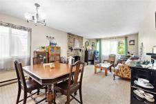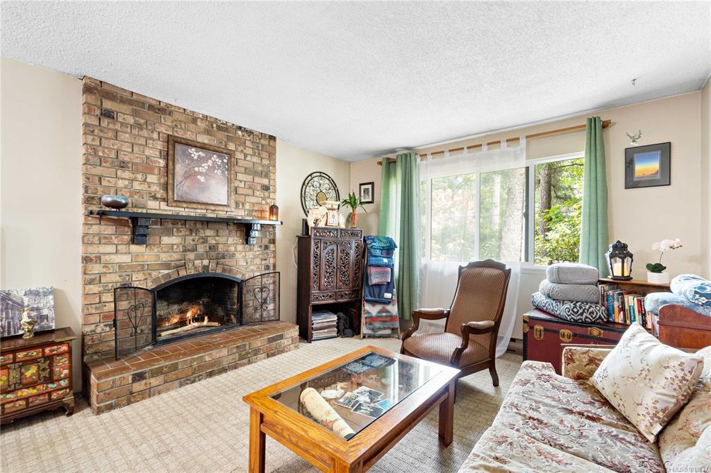 Incredible value and upside potential in this centrally located 2-bedroom unit at Twelve Oaks. Notable updates have already been done, including brand-new vinyl windows. The kitchen opens to a bright living and dining area with a cozy wood-burning fireplace. Both bedrooms are a good size, with the primary featuring a walk-through closet and cheater ensuite. The full laundry room adds extra storage. Ideally located on a main bus route and close to schools, shopping, Bowen Park, Buttertubs Marsh, and more. The complex allows rentals and welcomes one cat or small dog - making this a smart investment with plenty of future potential.