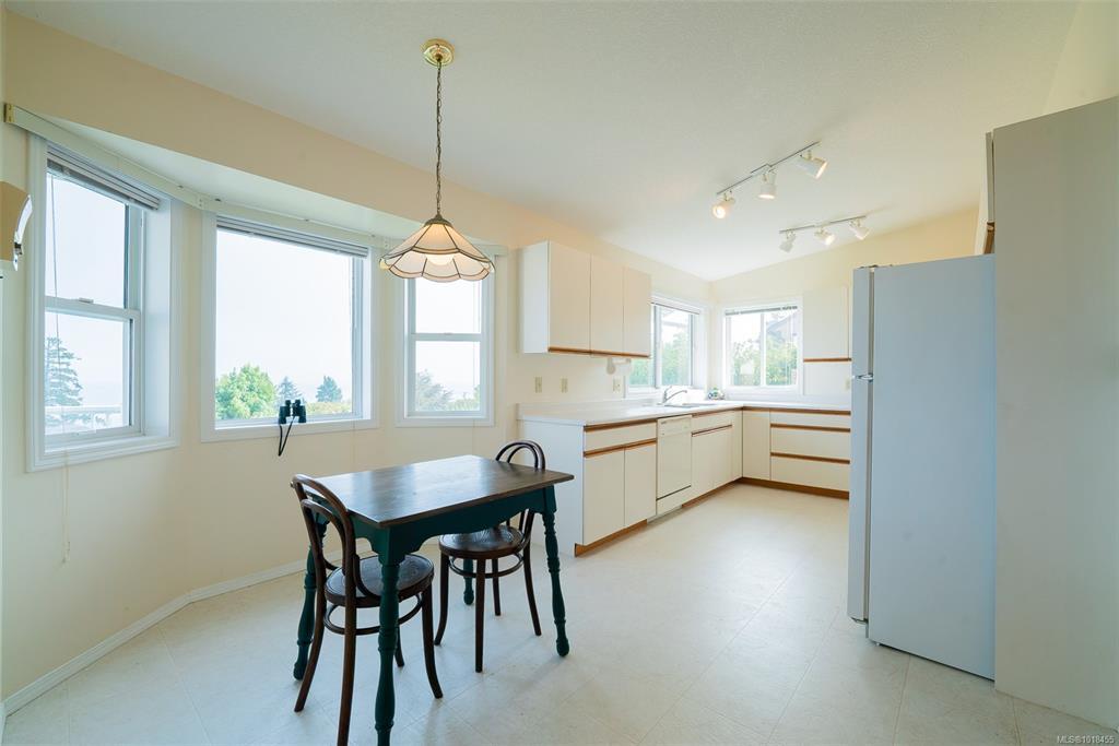 This level entry home features an outstanding ocean view and is set on a quiet cul-de-sac in a desirable location in North Nanaimo. With approximately 3100sf, including 1659 sf on the main level, the expansive living and dining rooms each have beautiful views of the Salish Sound and Coastal Mountains. The living room also features a gas fireplace and picture windows and vaulted ceilings to add natural light. The primary bedroom features a walk-in closet and ensuite; another bedroom and den complete this level. The lower-level features enormous storage space, 3rd bedroom, family room with fireplace, and flex/mud room with easy access to the rear yard, plus a separate side door if adding a basement suite is an option. A deep driveway leads to a double garage, ideal for recreational vehicles. A gently sloped yard is also easily accessible. The 12,400sf lot is also extra deep and private with mature gardens. You have excellent neighbours, including a mix of young families to retirees.