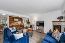 NO STRATA FEES — The lush, landscaped gardens are the star of this updated 3-bed, 2-bath half duplex. Enjoy 9 fruit varieties, 4+ veggie beds, hydrangeas, and a dreamy moonlight flower garden. Inside, you’ll find fresh vinyl plank flooring, new baseboards, lighting, and two fully renovated bathrooms. The crisp “Simply White” paint—an award-winning shade that flatters both cool and warm tones—brightens every room. The main level features a spacious, open layout with a cozy gas fireplace, a dining area, and a kitchen that opens to a large deck and a fenced backyard. Bonus features include a 3-season Oasis, RV parking, a movable rear gate, and even room for a chicken coop. Two storage sheds, quiet neighbours, and a short walk to shops and parks complete the picture. All this—for the price of a condo!