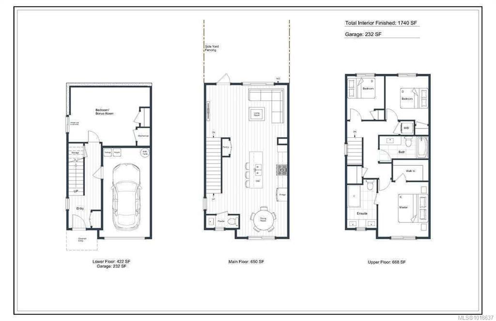 Enjoy the comforts of West Coast Living with this spacious luxurious 4 bedroom, 2.5 bathroom 1,740 sq.ft (finished) Coastwoods townhome with beautiful ocean views. Features and finishes include a high efficiency natural gas furnace, full ducted heat pump system, 9’ ceilings on the main and second floors, gas range, gas BBQ outlet, quartz counters, KitchenAid appliances and EV charging in the enclosed garage. Upstairs, the primary suite features views of the Salish Sea and Olympic Mountains, a large walk-in closet and a 4-piece luxury ensuite with heated tile flooring. Enjoy your private landscaped back yard in this tranquil family neighbourhood just a short walk from the many amenities of Royal Bay. All measurements are approximate, photos shown are of a comparable floor plan, 2-5-10 year warranty. Price does not include GST, property transfer tax exempt if owner occupied. Move-in early 2026. Property not yet assessed. Strata not yet developed.