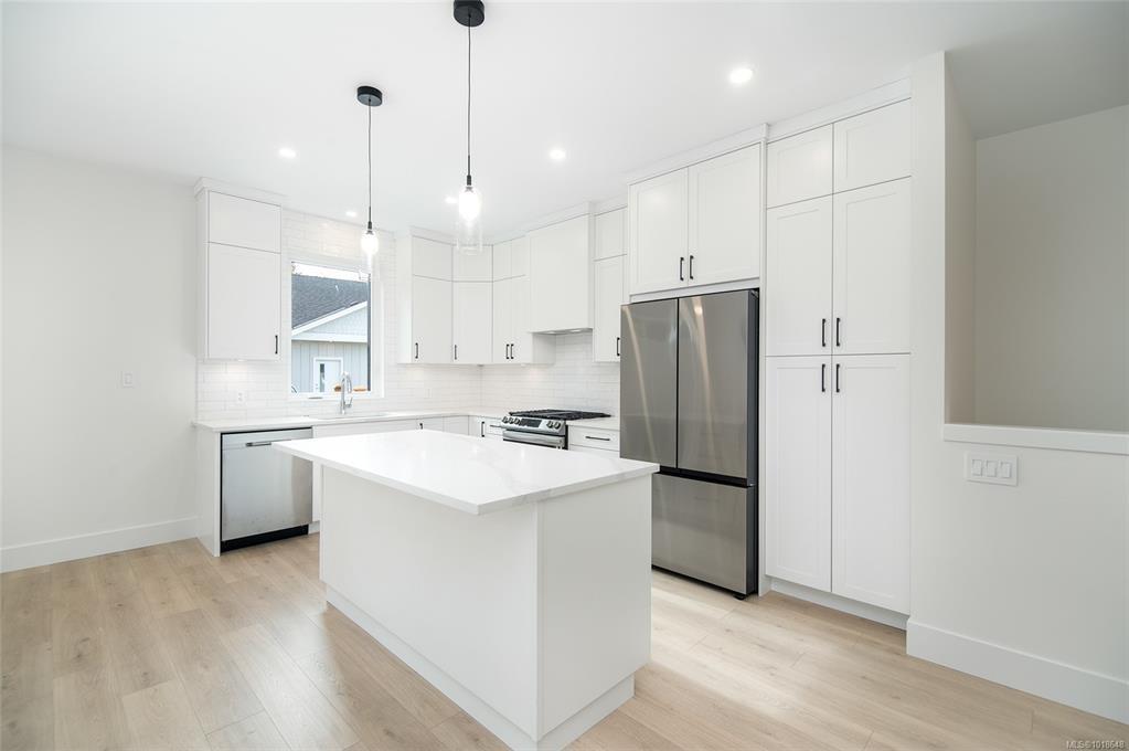 Main level entry with lower walk-out! Welcome to Eagle Ridge Executive Patio Homes—Campbell River’s premier new development! This spacious five-bed, four-bath home offers 3,238 sq. ft. of high-quality living, ideal for multi-generational families. Enjoy a main-level entry with open-concept living and a fully finished lower-level walk-out featuring an in-law suite (no appliances). Built with attention to detail: quartz counters, gas range, concrete fireplace, floating shelves, waterproof laminate flooring, two living rooms, a rec room, and plenty of storage. Outside, relax on the expansive rear balcony overlooking a forested backdrop or enjoy the fenced, landscaped backyard with irrigation—perfect for kids and pets. Located near schools, shopping, marinas, and golf. Includes 2-5-10 new home warranty. Only 28 homes in total—22 half duplexes and six free-standing ranchers—don’t miss your chance to live in Eagle Ridge! Photos are of similar unit.