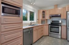 Extensive renovations completed between 2012–2014 include a new roof, windows, a modern kitchen, updated bathrooms, a new front deck, and a landscaped yard with an irrigation system. The thoughtful updates blend comfort and coastal style while taking full advantage of the stunning view corridor.